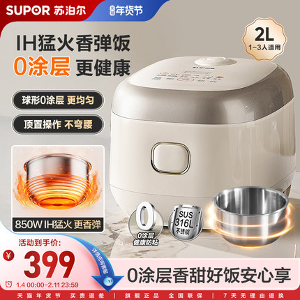 苏泊尔电饭煲家用IH大火力0涂层不锈钢内胆2L容量智能预约煮饭锅