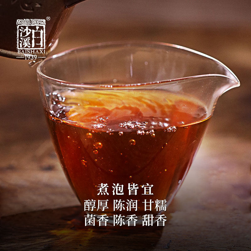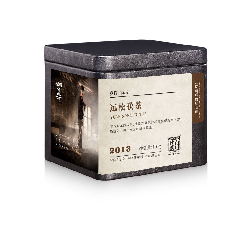 白沙溪正品黑茶湖南安化陈年茯砖茶岁润2013年金花远松茯茶100g