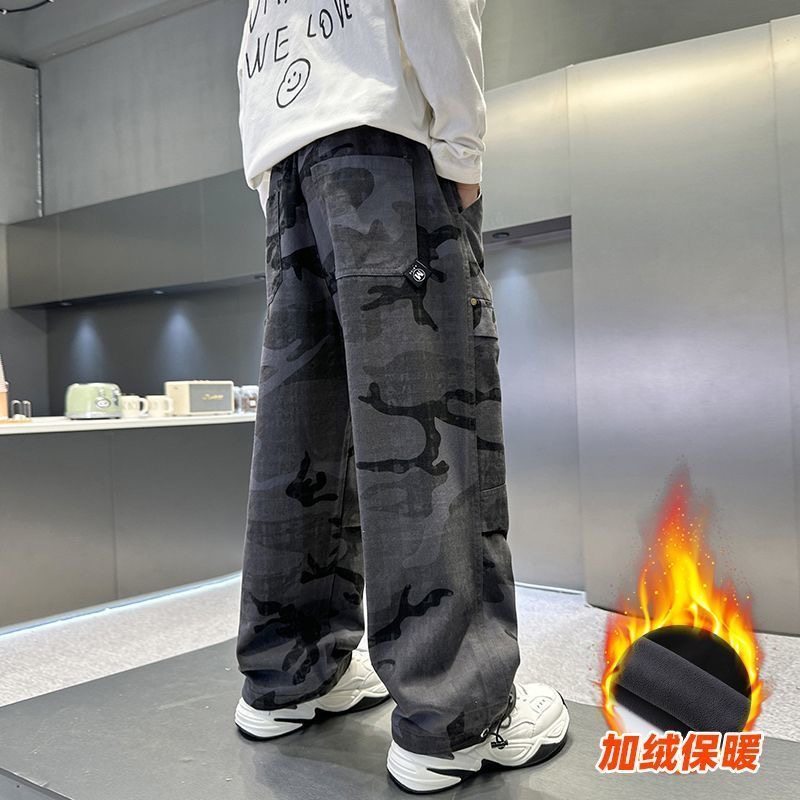 男童迷彩工装裤春秋款2025新款帅气中大童宽松裤子男孩秋冬长裤潮