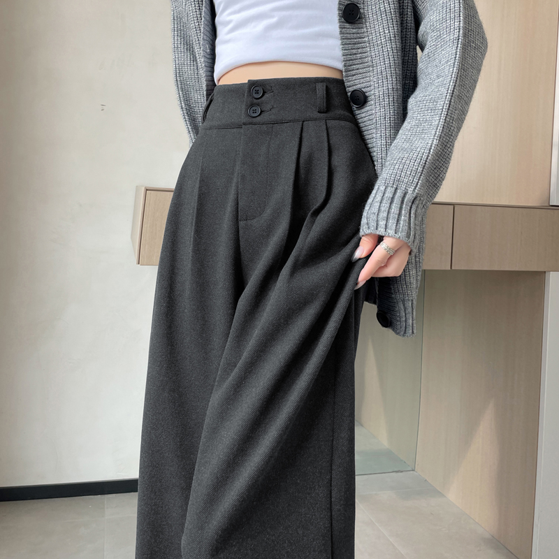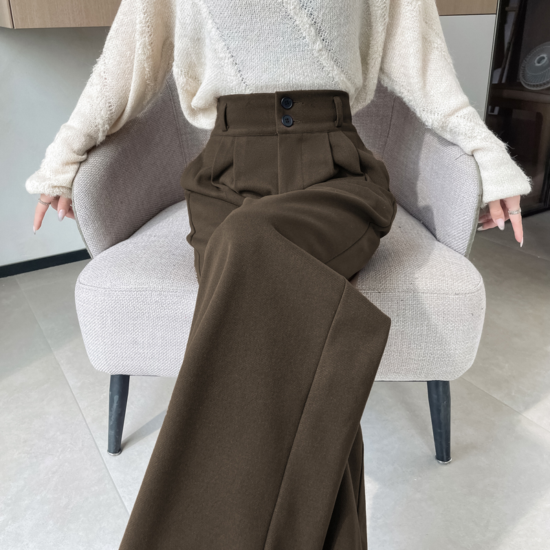 加厚毛呢西装裤阔腿裤女秋冬季新款松紧高腰垂感直筒裤休闲拖地裤