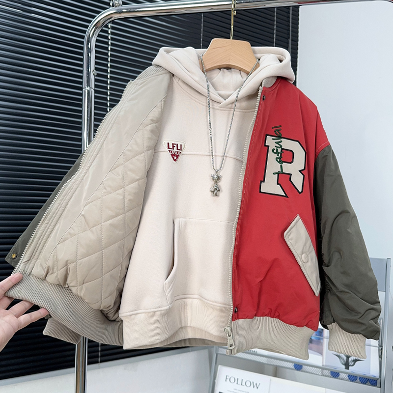 啦芙莱童装男童夹棉外套冬款中大童拼接棉衣夹克儿童保暖上衣9555