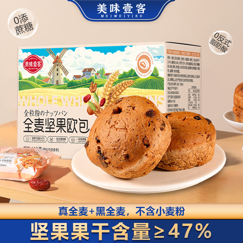 全麦欧包学生早餐速食坚果手撕面包营养健康解馋零食整箱即食食品