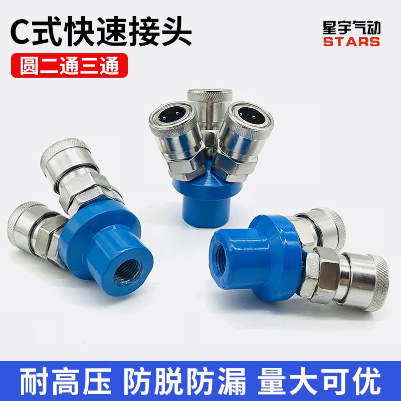气动气管快速接头SMY圆三通圆二通气泵空压机配件大全C式快插接头