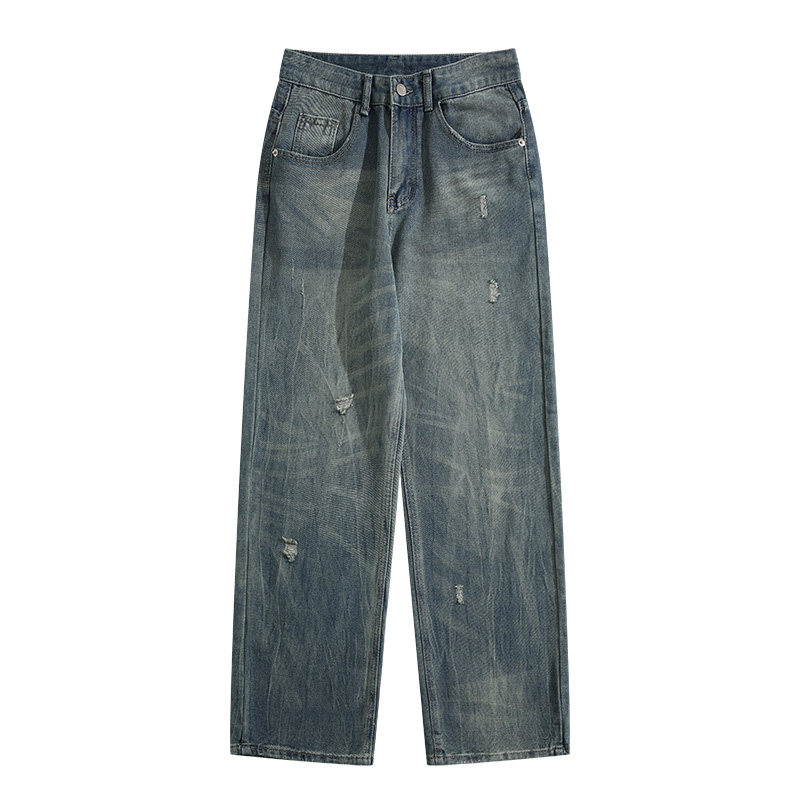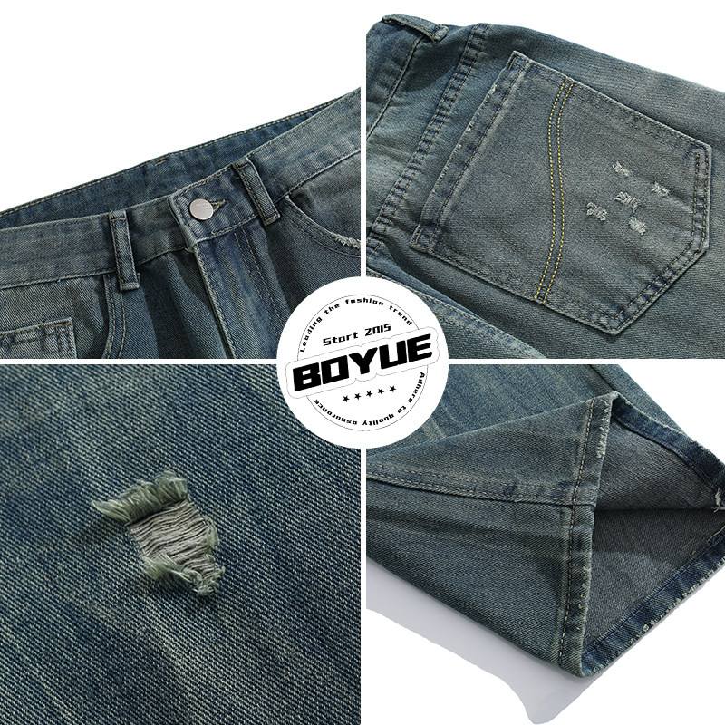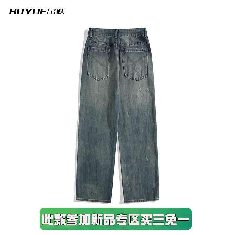 BOYUE帛跃欧美破坏水洗破洞牛仔裤高街痞帅老爹青少年直筒长裤男