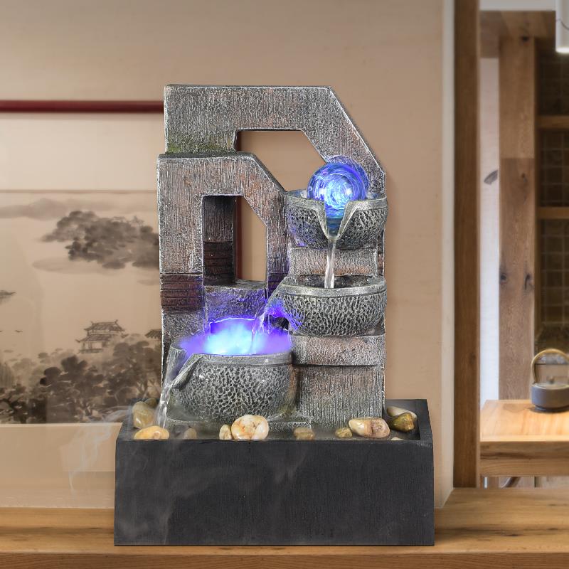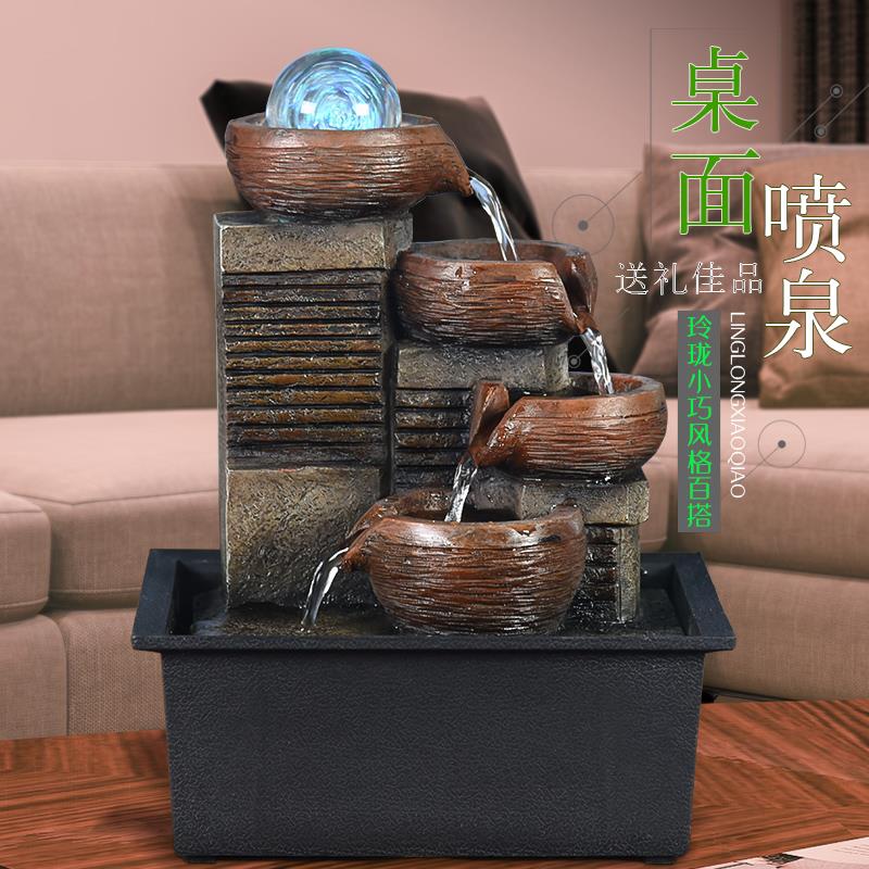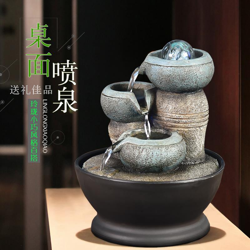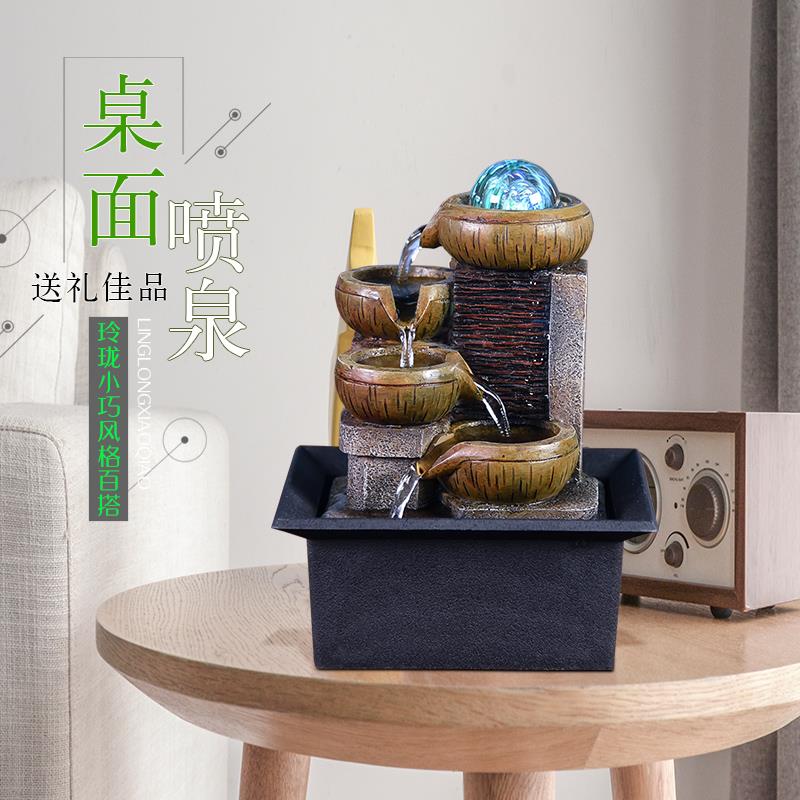 财源滚滚办公室桌面喷泉流水摆件循环水家居客厅招财风水轮装饰品