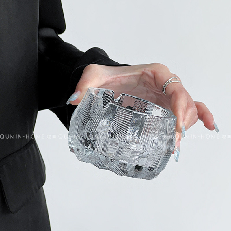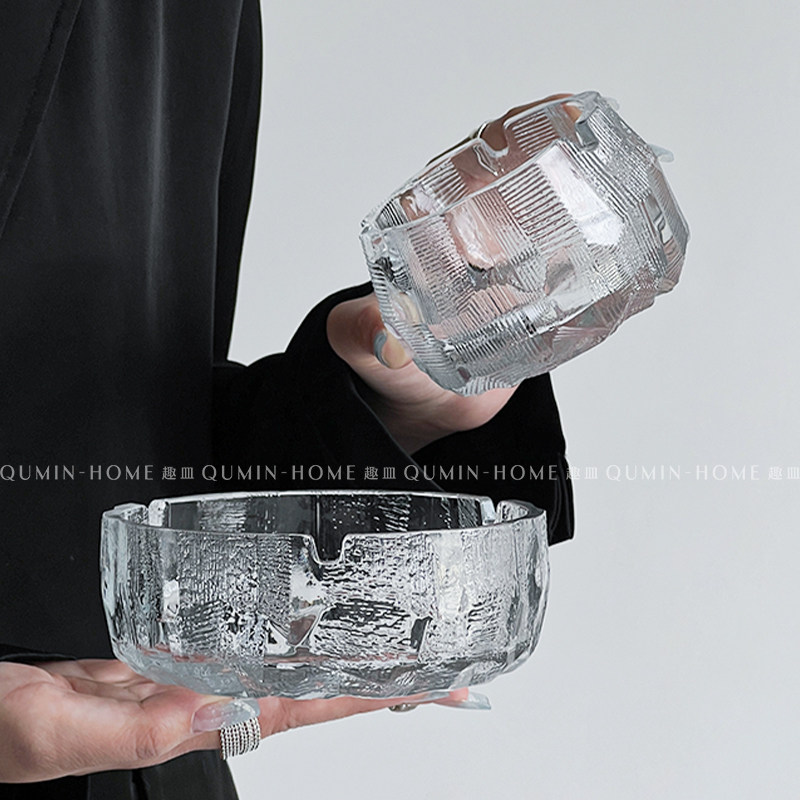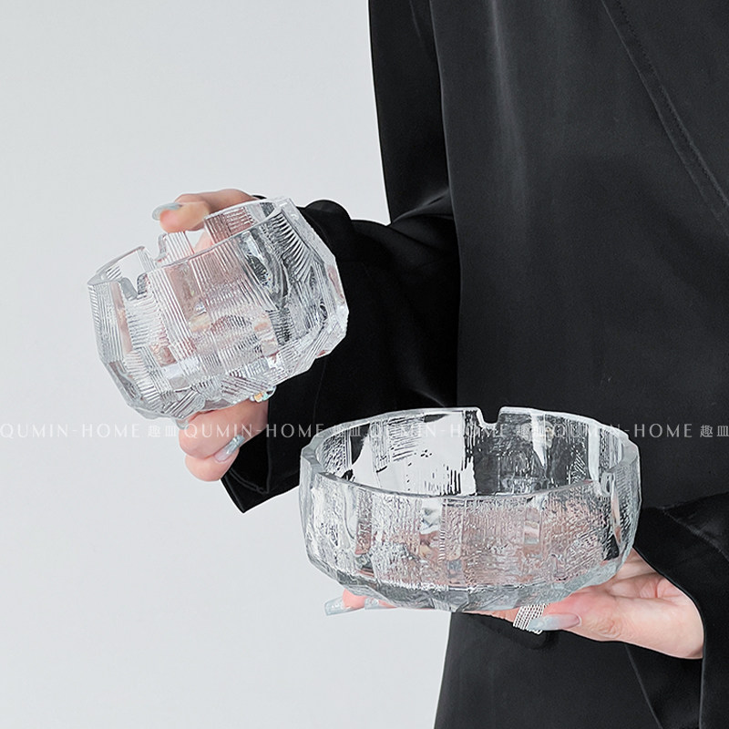 趣皿轻奢防飞灰玻璃烟灰缸家用客厅烟灰缸办公室高颜值烟盅雪茄缸
