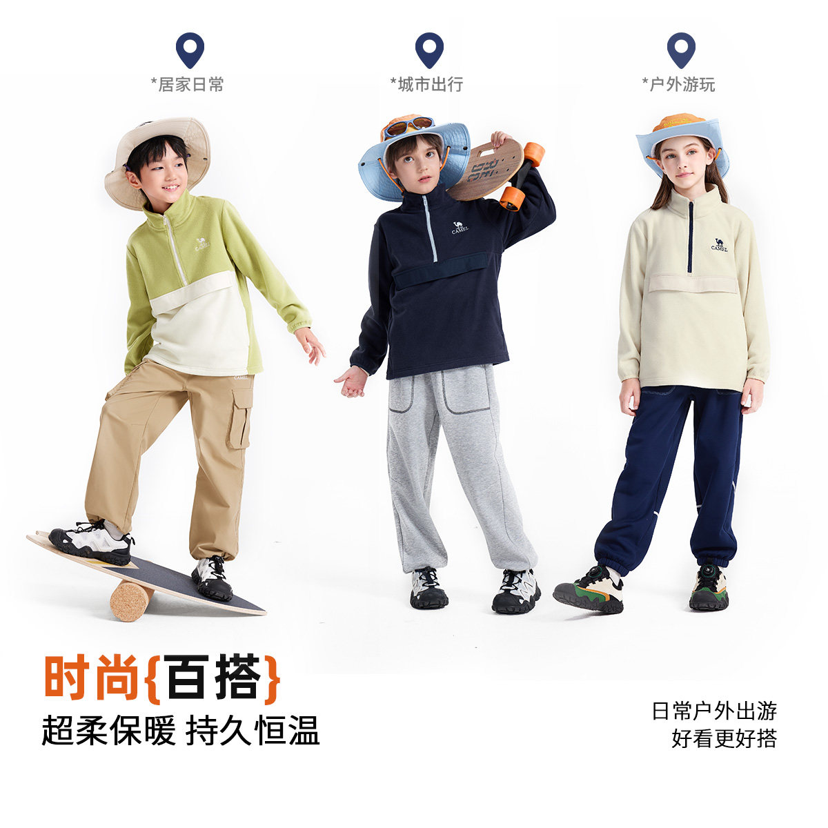 小骆驼儿童抓绒衣秋冬季2025新款加绒加厚保暖男童女童摇粒绒外套