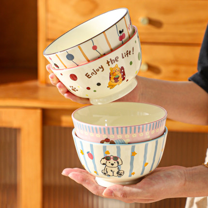 舍里可爱米饭碗家用陶瓷碗高颜值早餐碗卡通儿童碗喝汤小碗酸奶碗