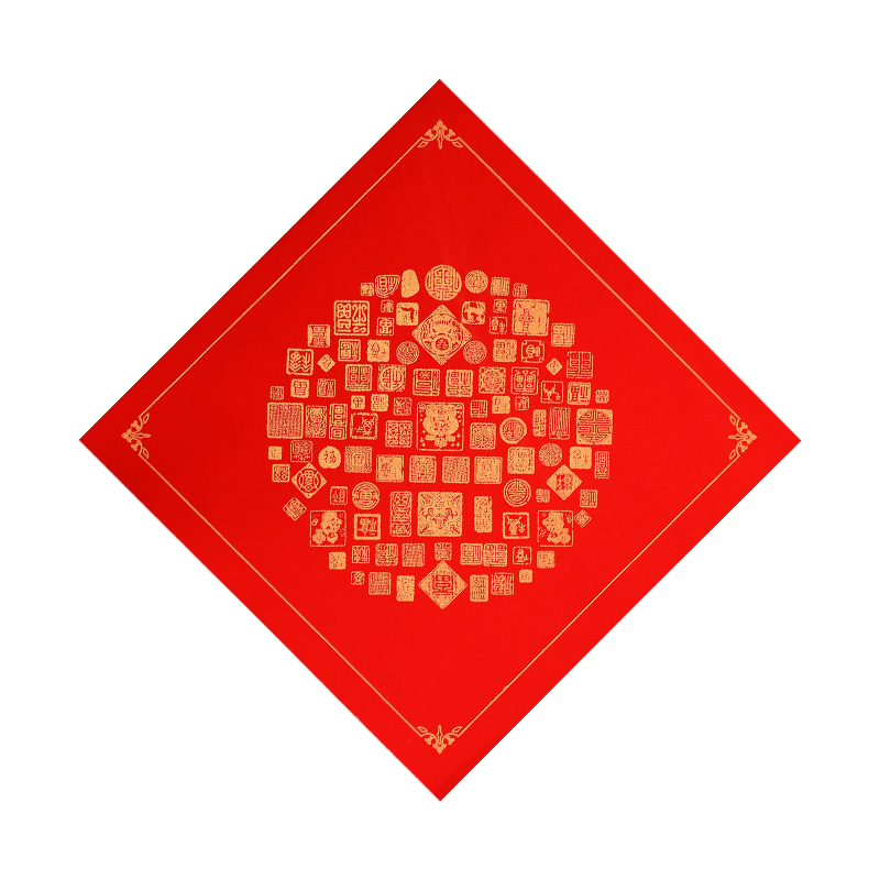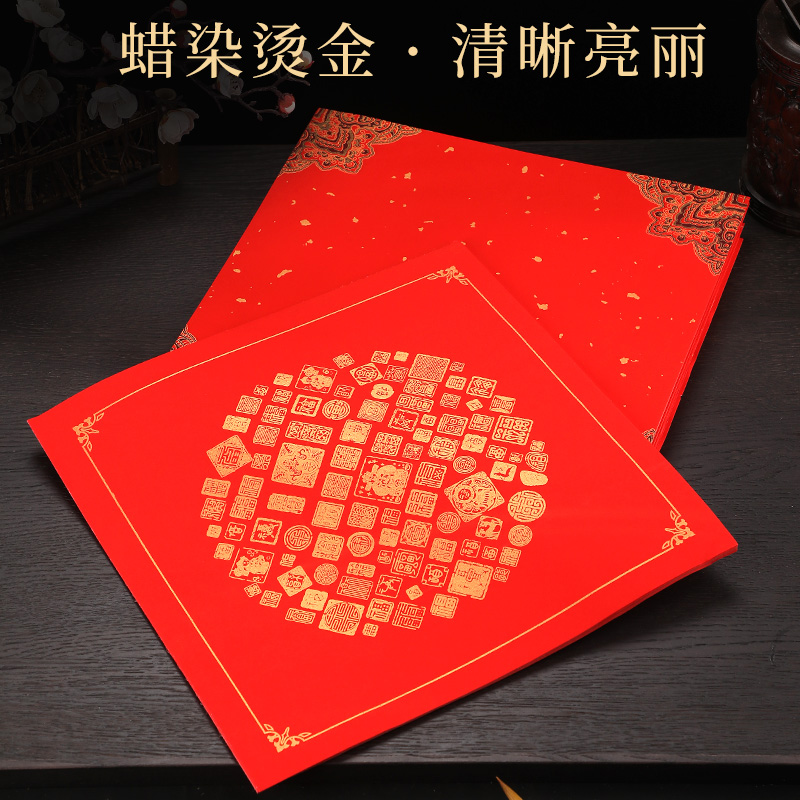 万年红宣纸对联纸 加厚蜡染福字斗方彩绘洒金春联 空白手写半生熟