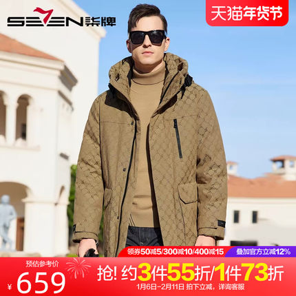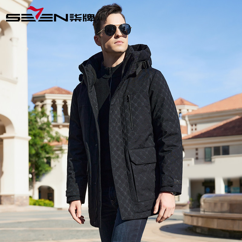【鹅绒】柒牌连帽加厚羽绒服男2023冬季新款时尚字母提花保暖外套
