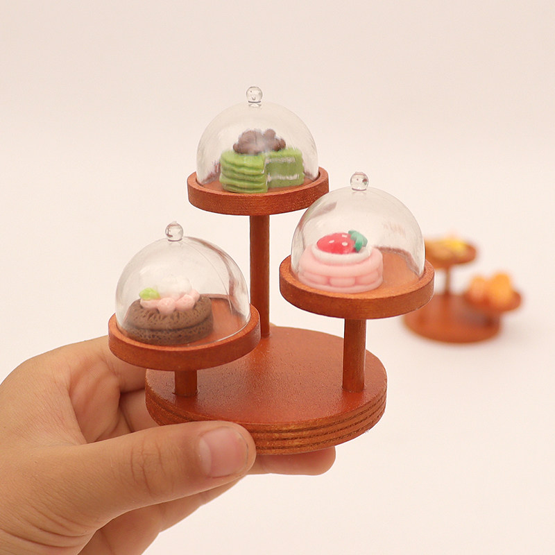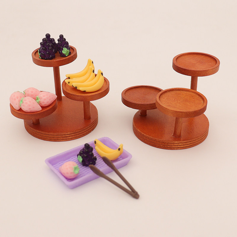 娃娃屋家具场景迷你木质甜品台下午茶托盘蛋糕点心多层阶梯展示架