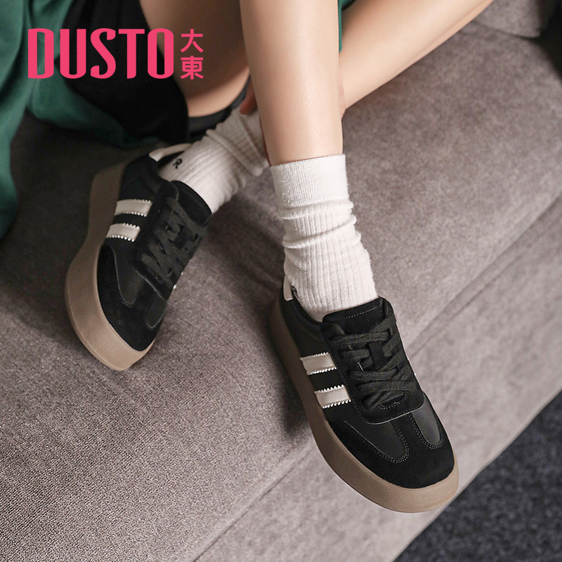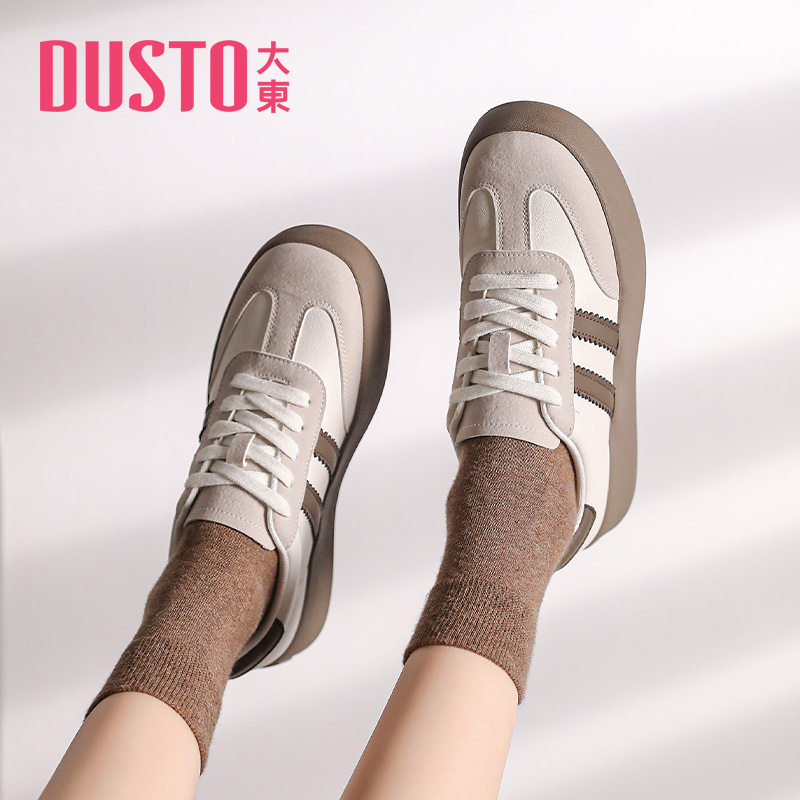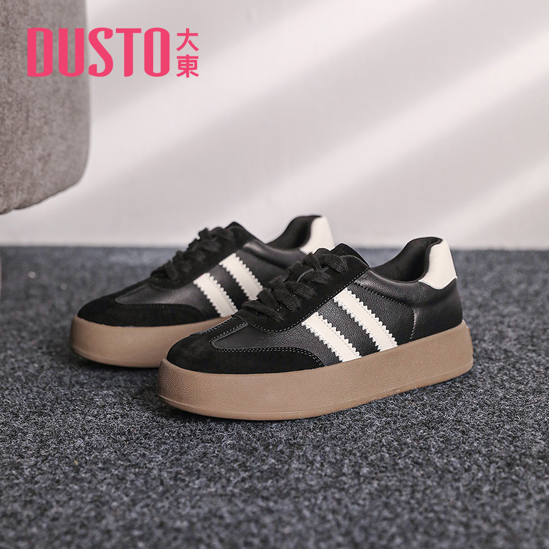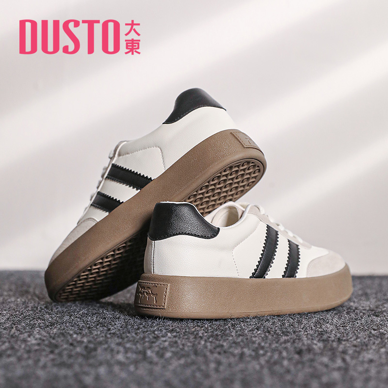 大东德训鞋女鞋2025秋季新款休闲鞋时尚板鞋平底鞋系带厚底小白鞋