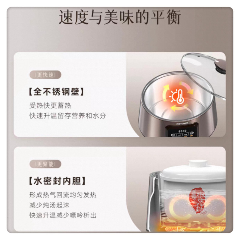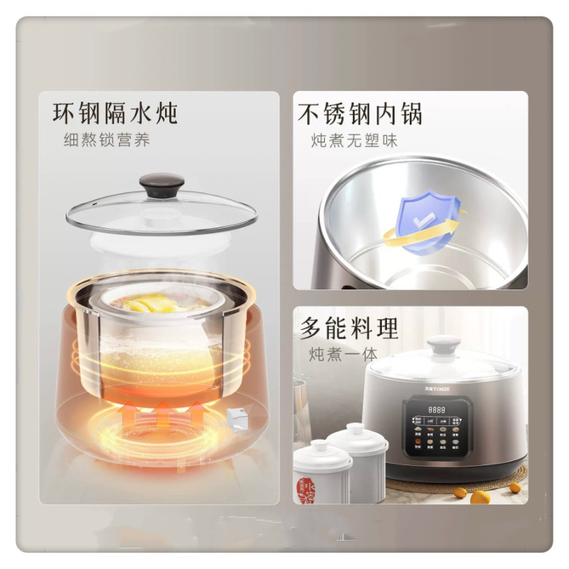 天际不锈钢电炖锅1-3人陶瓷隔水炖全自动煮粥煲汤燕窝机2.2L新品