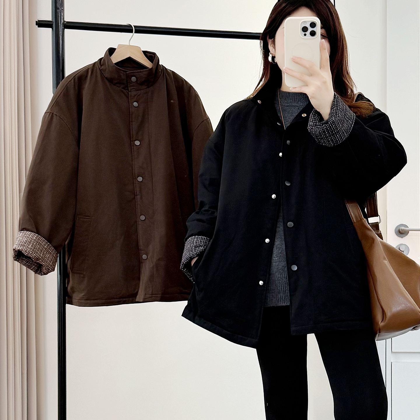 加厚百搭立领夹克棉衣冬季新款洋气大码风衣宽松显瘦胖mm防寒外套