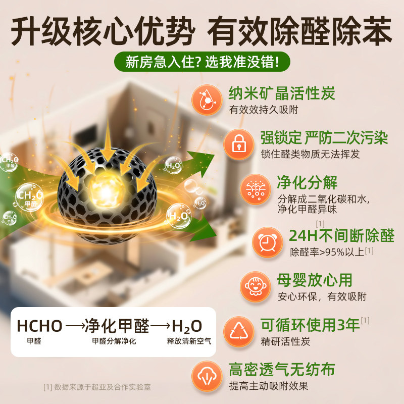 超亚活性炭除甲醛清除剂异味新房装修急入住车内净化吸甲醛竹炭包