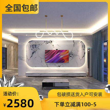 2023新款悬空岩板电视背景墙瓷砖大理石轻奢新中式客厅电视墙装修