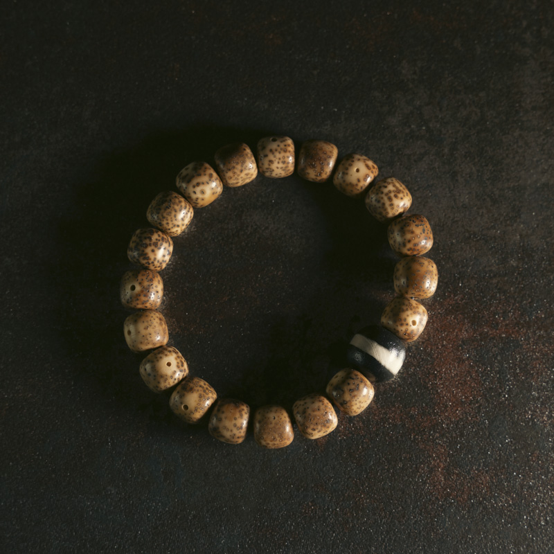 曲尾花原创手工陈籽星月菩提子单圈手链女 复古民族风个性手串男