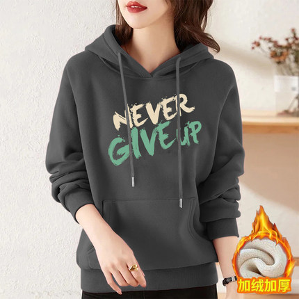 100%纯棉加绒连帽卫衣女新款秋冬宽松百搭休闲女学生加厚保暖外套