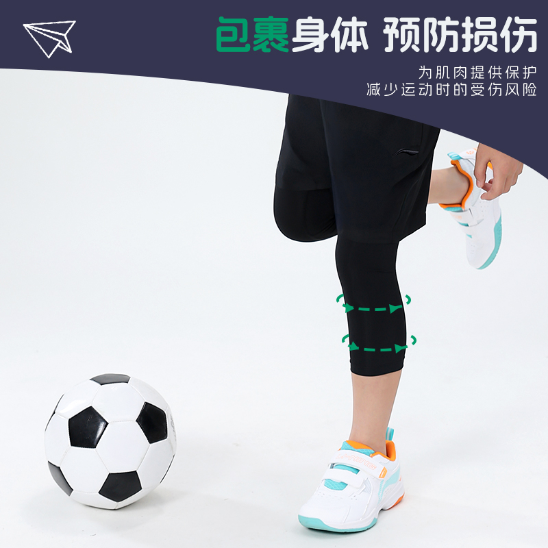 李宁儿童紧身裤男童新款速干运动短裤打底裤跑步篮球训练服七分裤