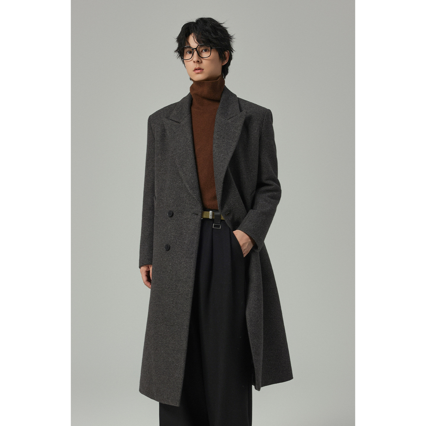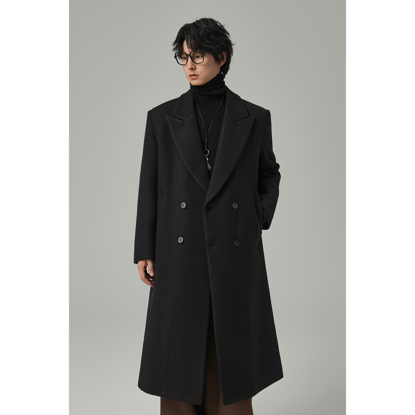 【储格】老钱风毛呢大衣男中长款帅气休闲戗驳领外套复古风衣厚款