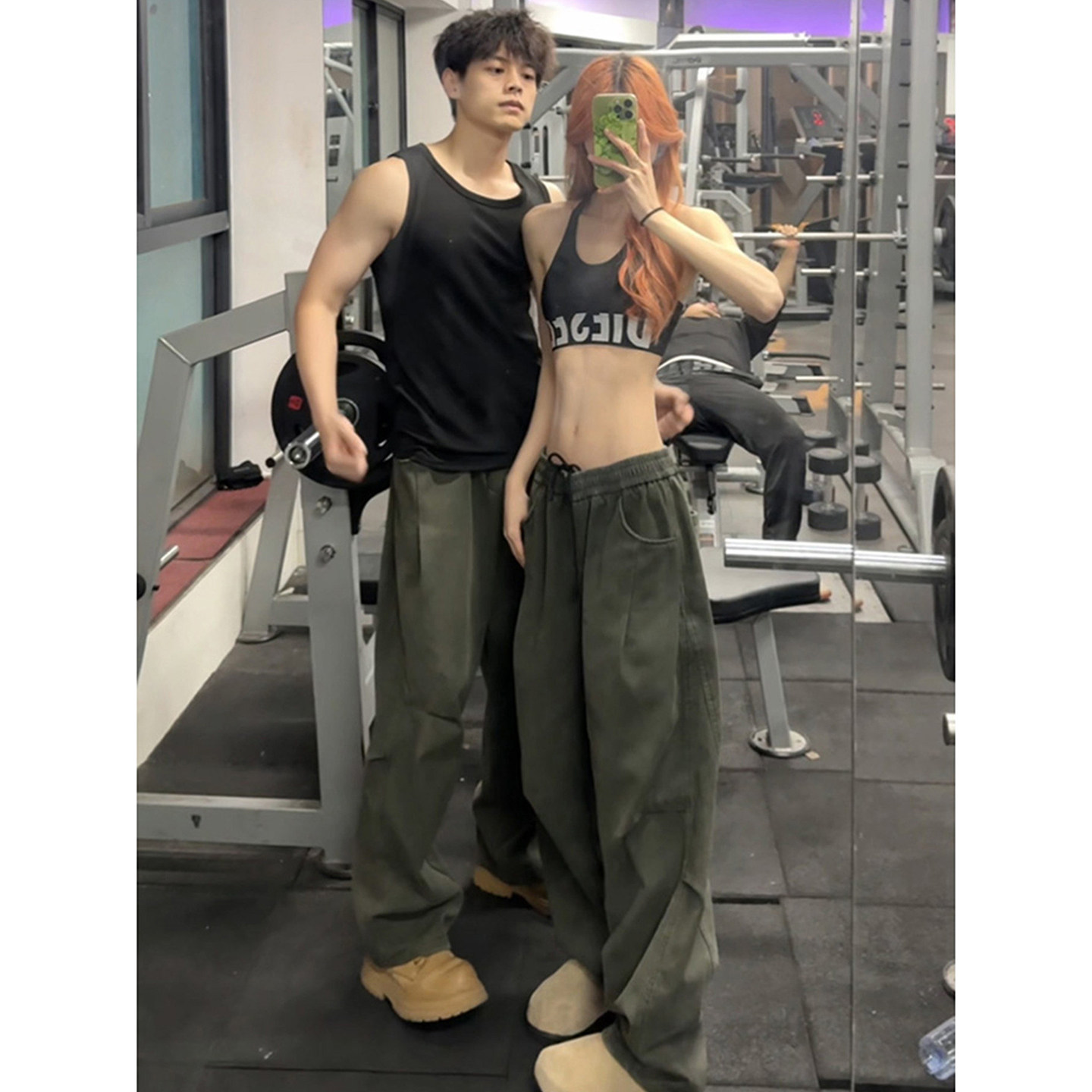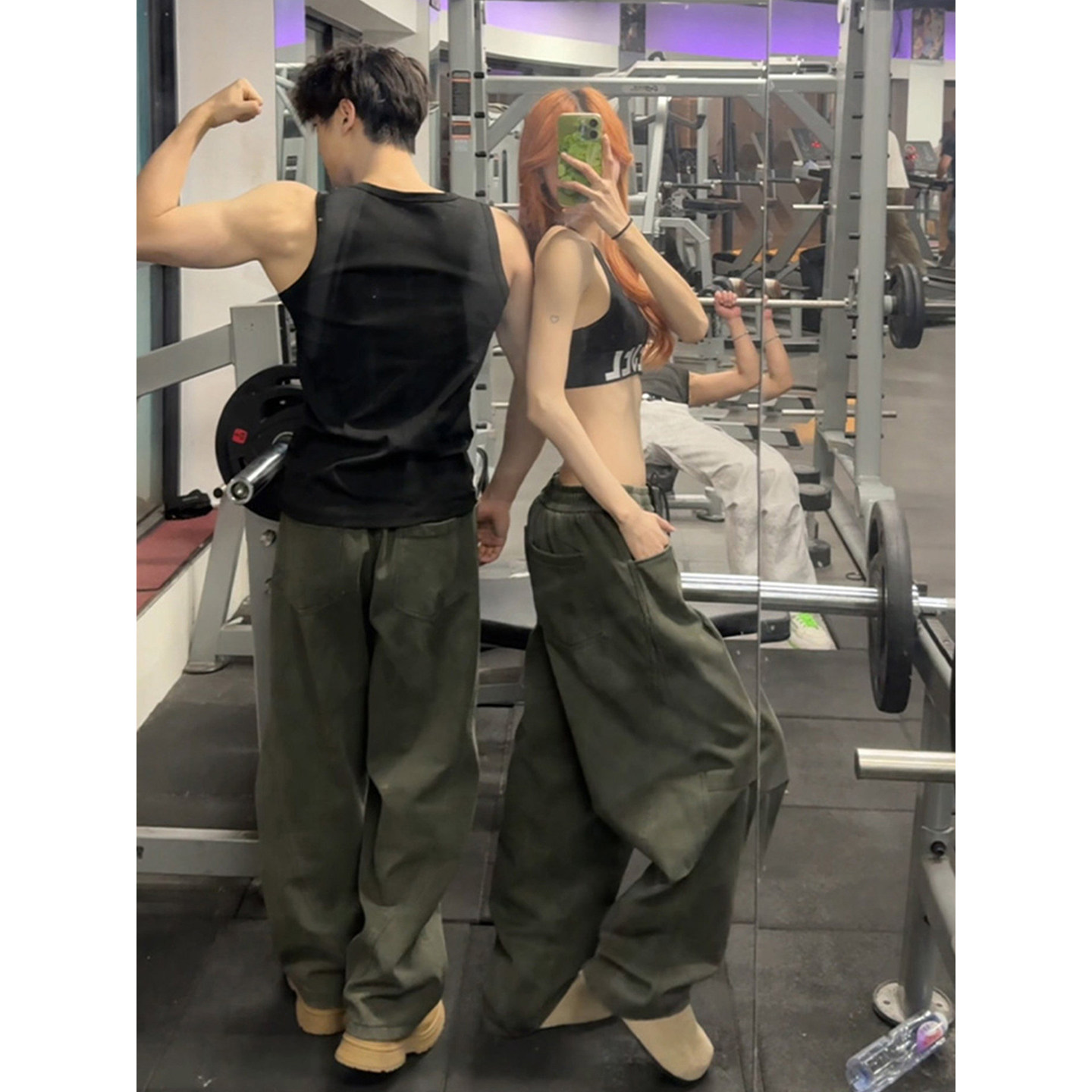 军绿色水洗纯棉弯刀裤男秋冬a字版型阔腿加绒裤子情侣工装休闲裤
