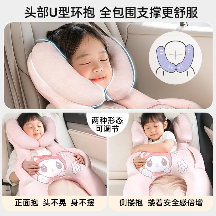 萌萌喵抱枕睡枕车载儿童长途坐车后排睡觉神器汽车用头枕靠枕大人