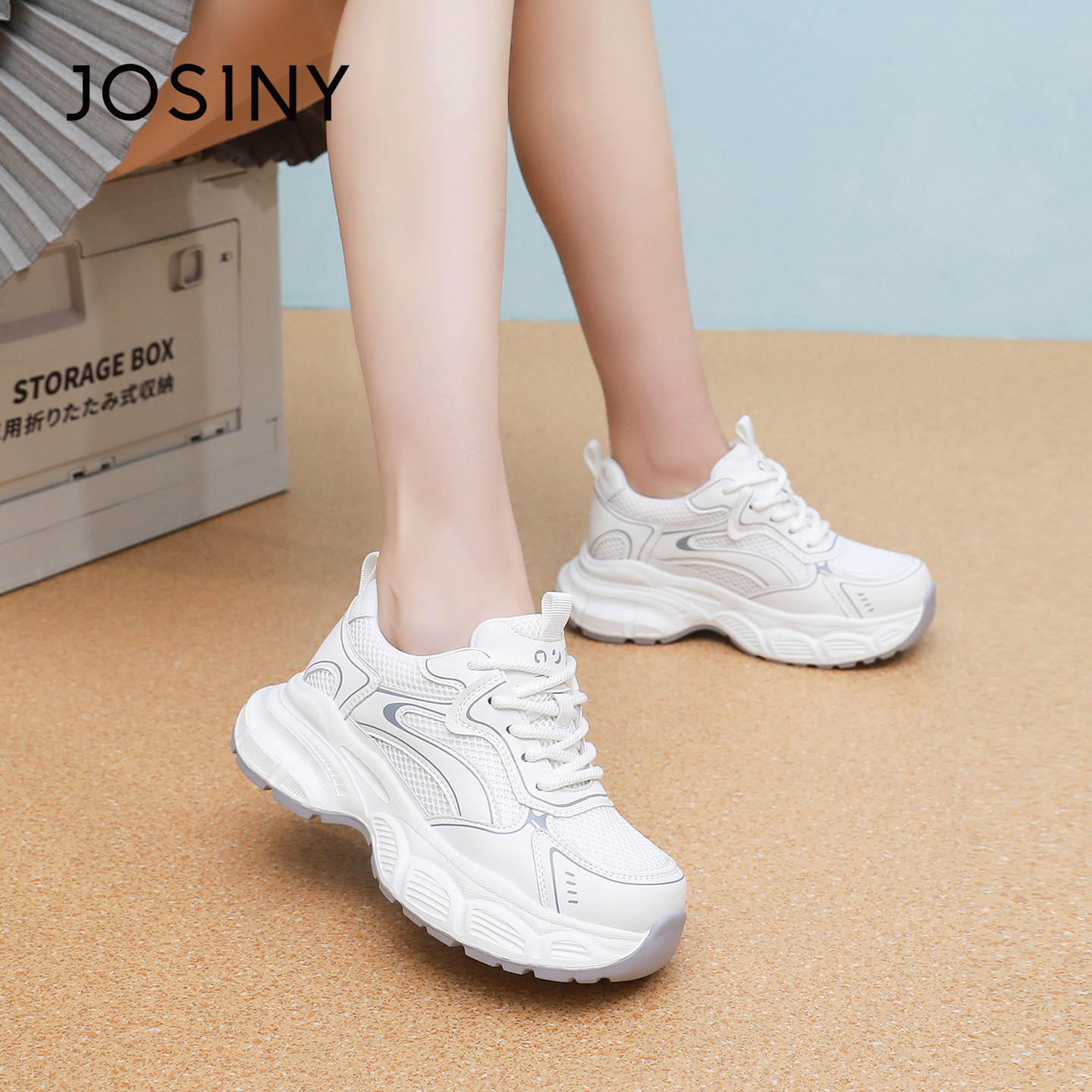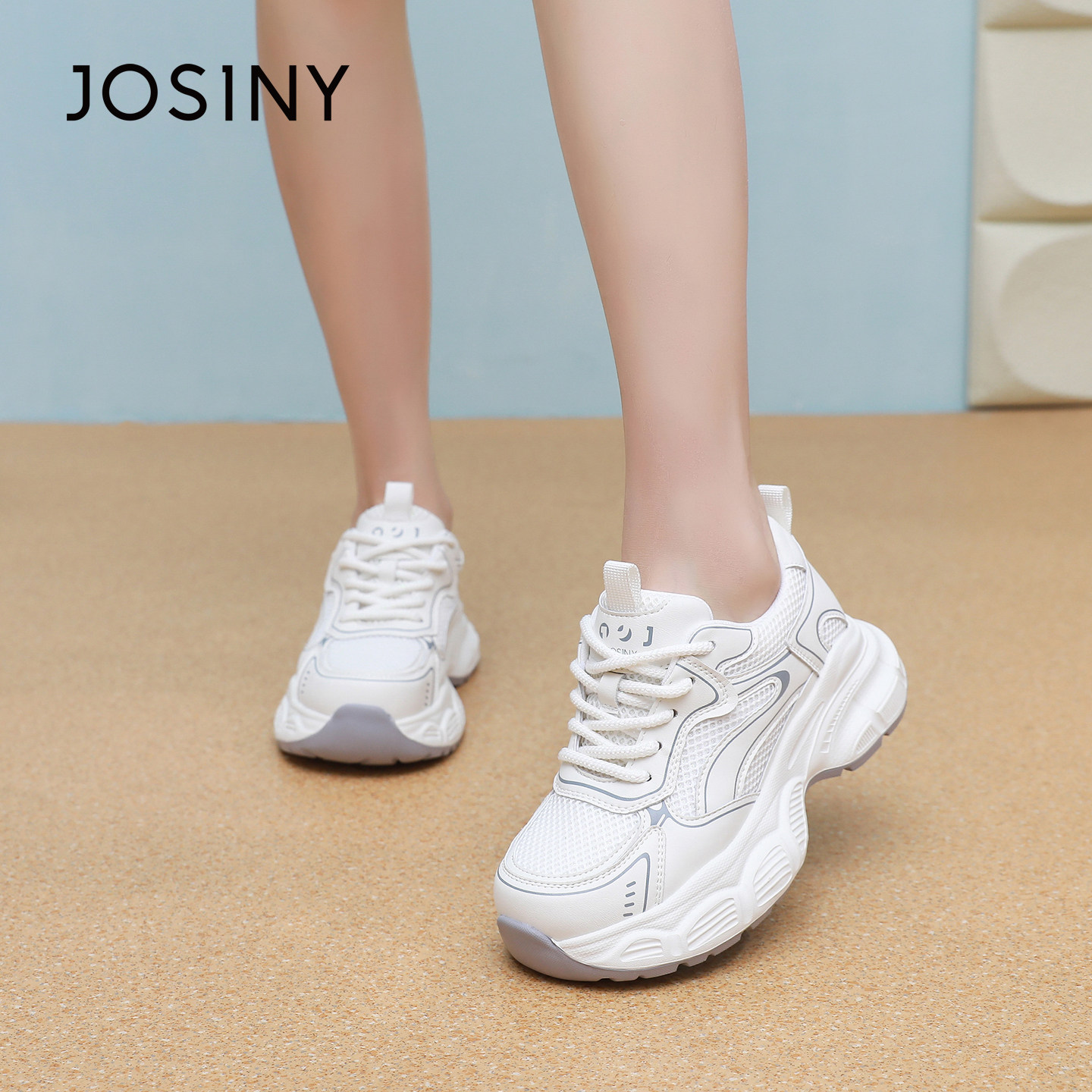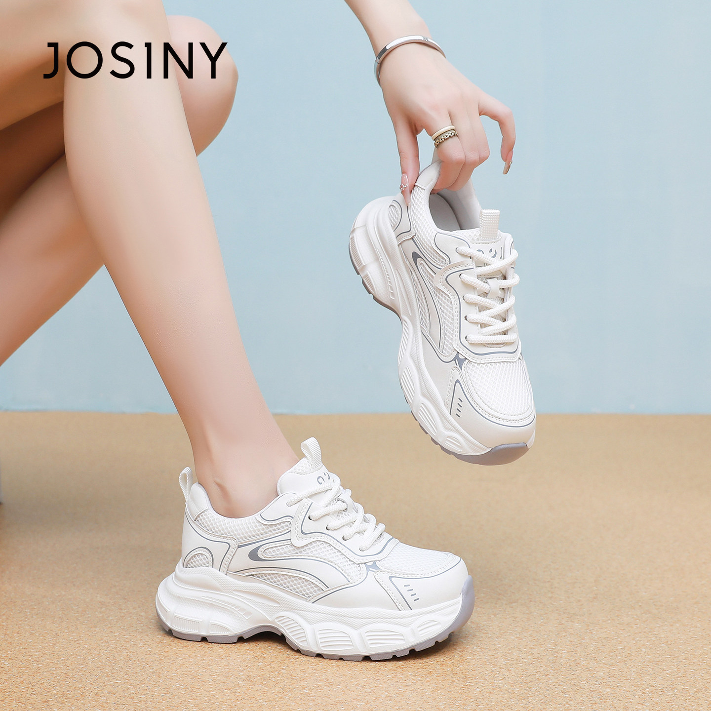 卓诗尼2025秋季新款厚底网面透气老爹鞋女休闲鞋舒适运动鞋小白鞋