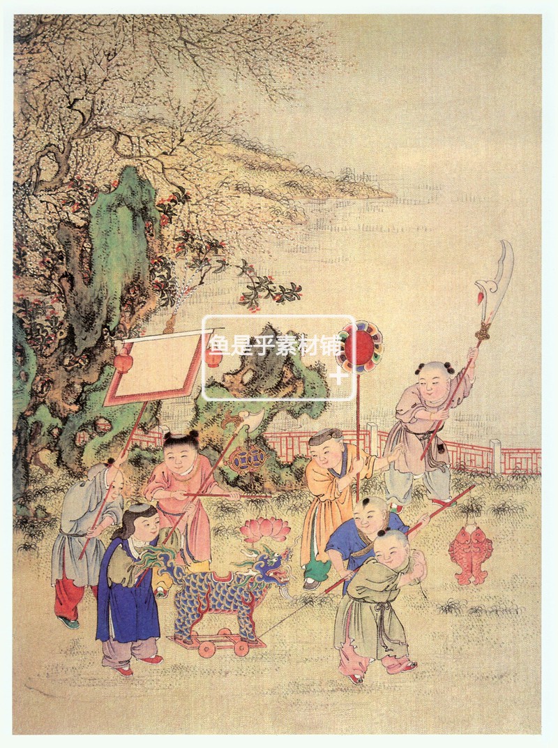 焦秉贞百子团圆图册清代古画工笔民俗儿童游戏绘画电子版素材图片