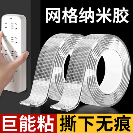 网格纳米胶双面胶防水无痕魔力加厚透明胶高粘度双面不伤墙固定贴