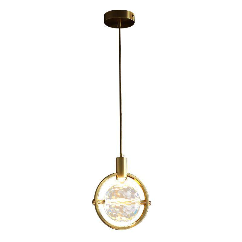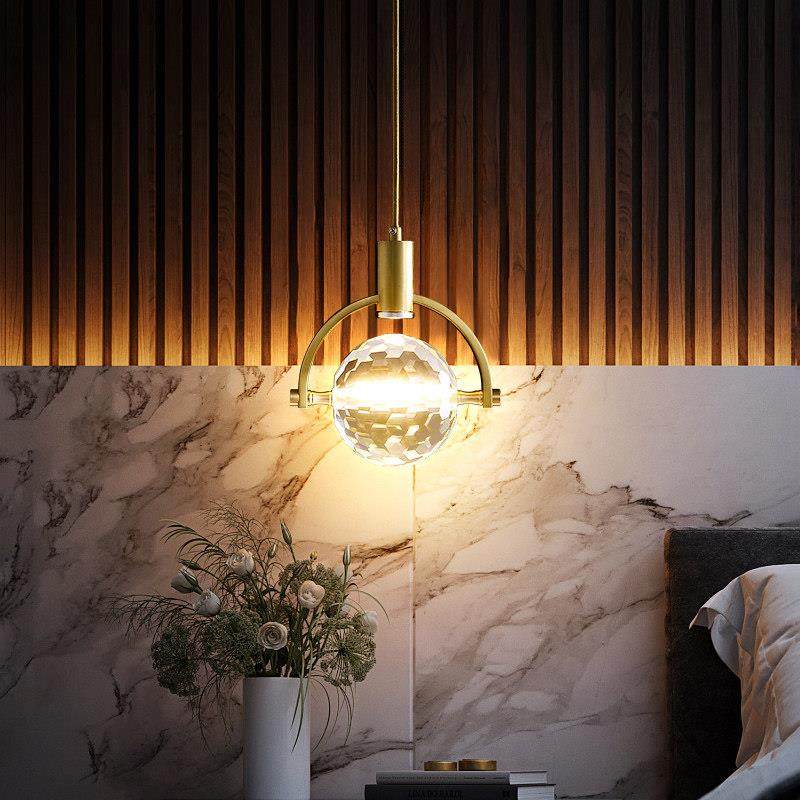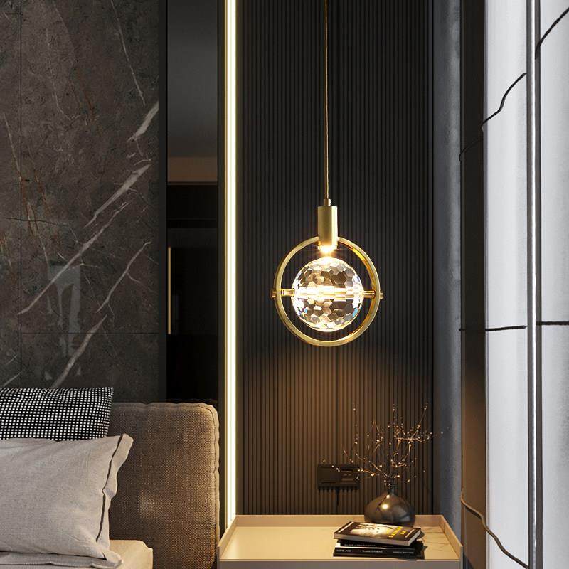 北欧轻奢水晶全铜吊灯足球形铜色床头小吊灯卧室玄关吊灯圆形奢华
