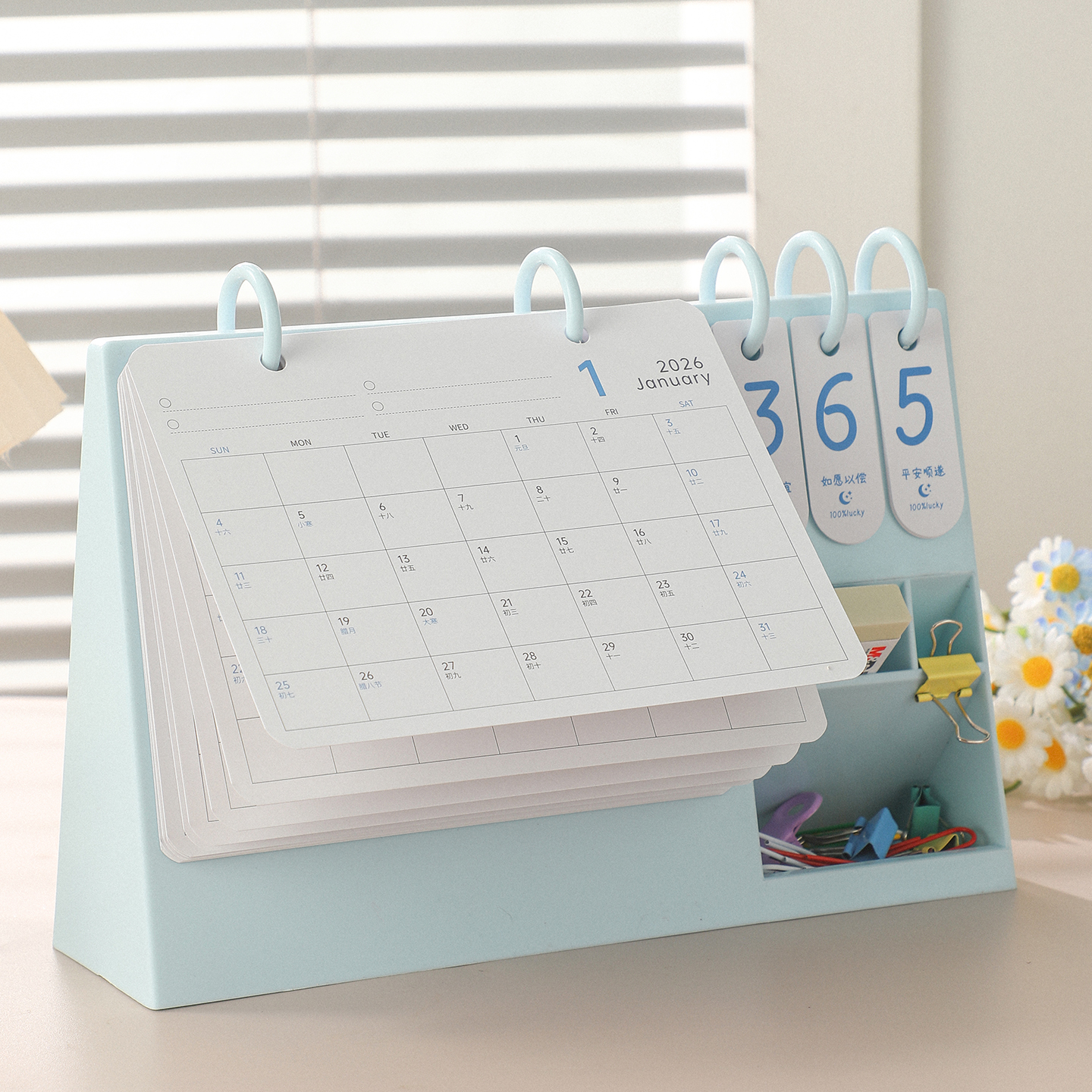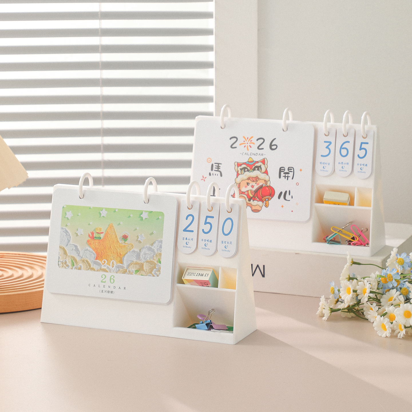 2026年台历月历创意梦幻亚克力励志倒计时日历卡通可爱日历桌面多能功收纳摆件定制LOGO企业订做内页印刷