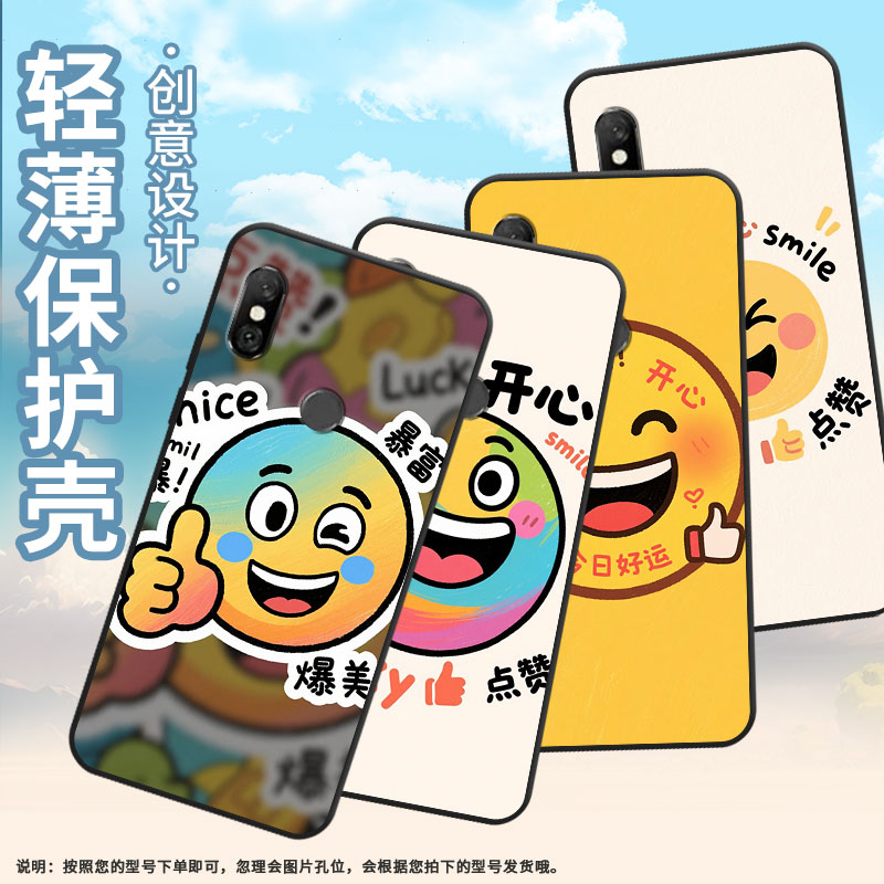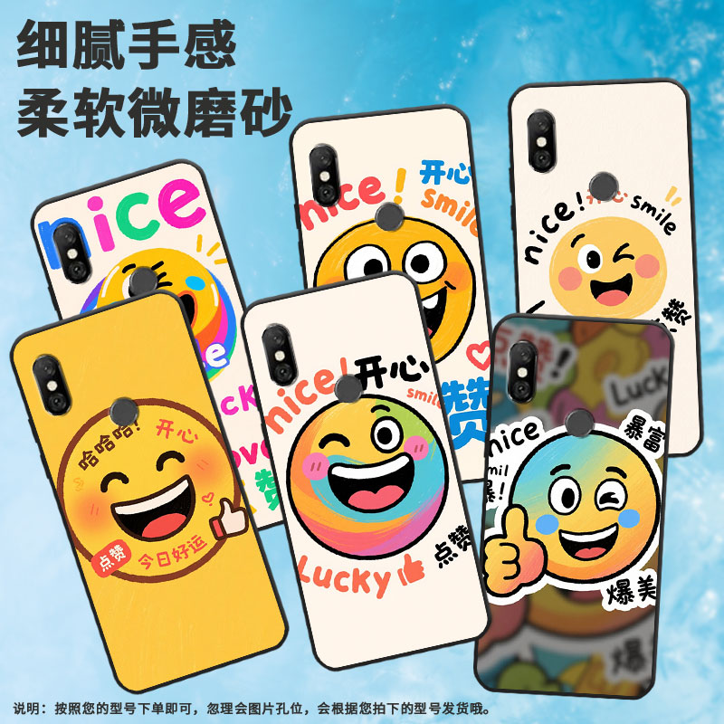 适用红米note6手机壳红米6a全包redmi6pro硅胶m1804c3cg眨眼笑脸红米6商务m1806e7tg红米note6pro保护套