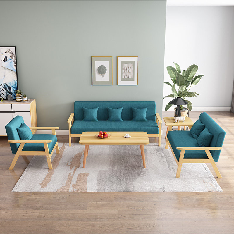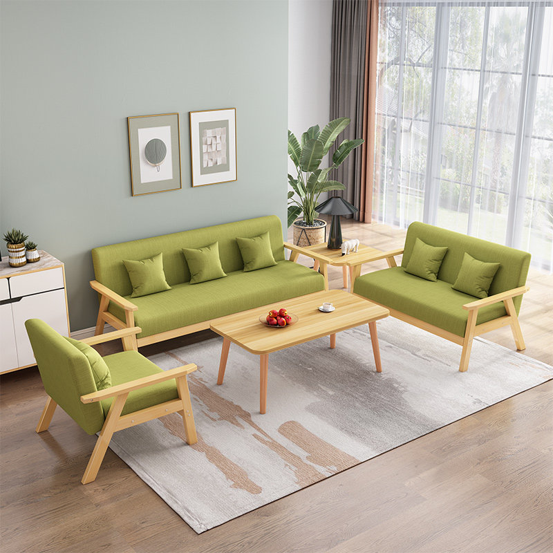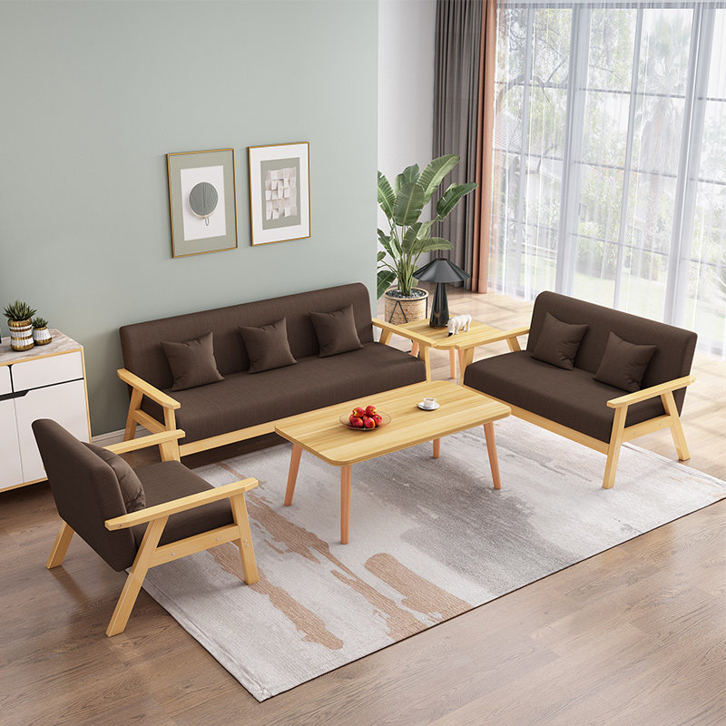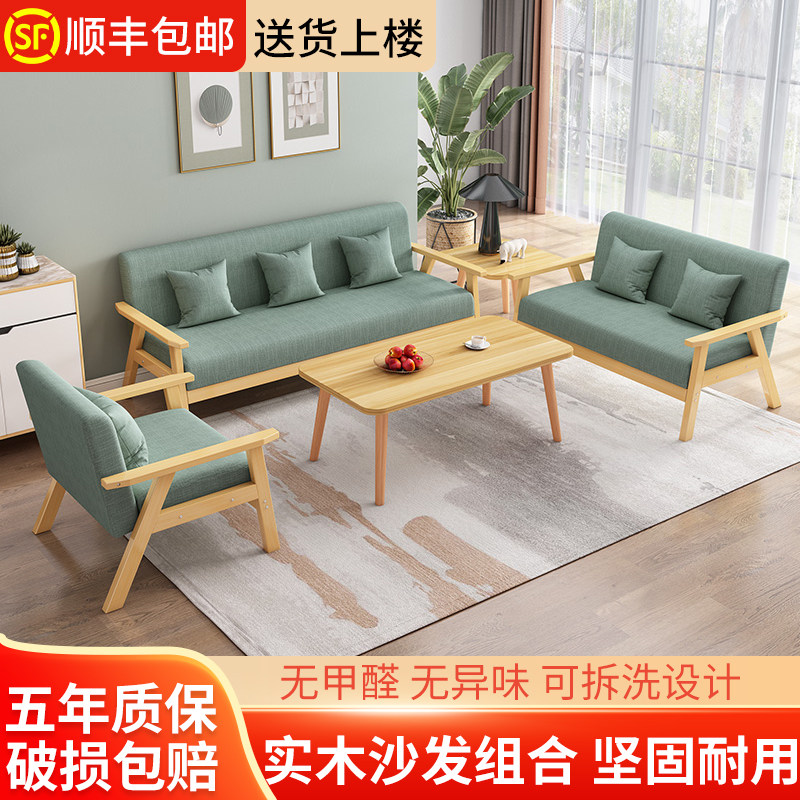 实木沙发茶几组合小户型出租房客厅现代简约布艺三人位简易办公椅