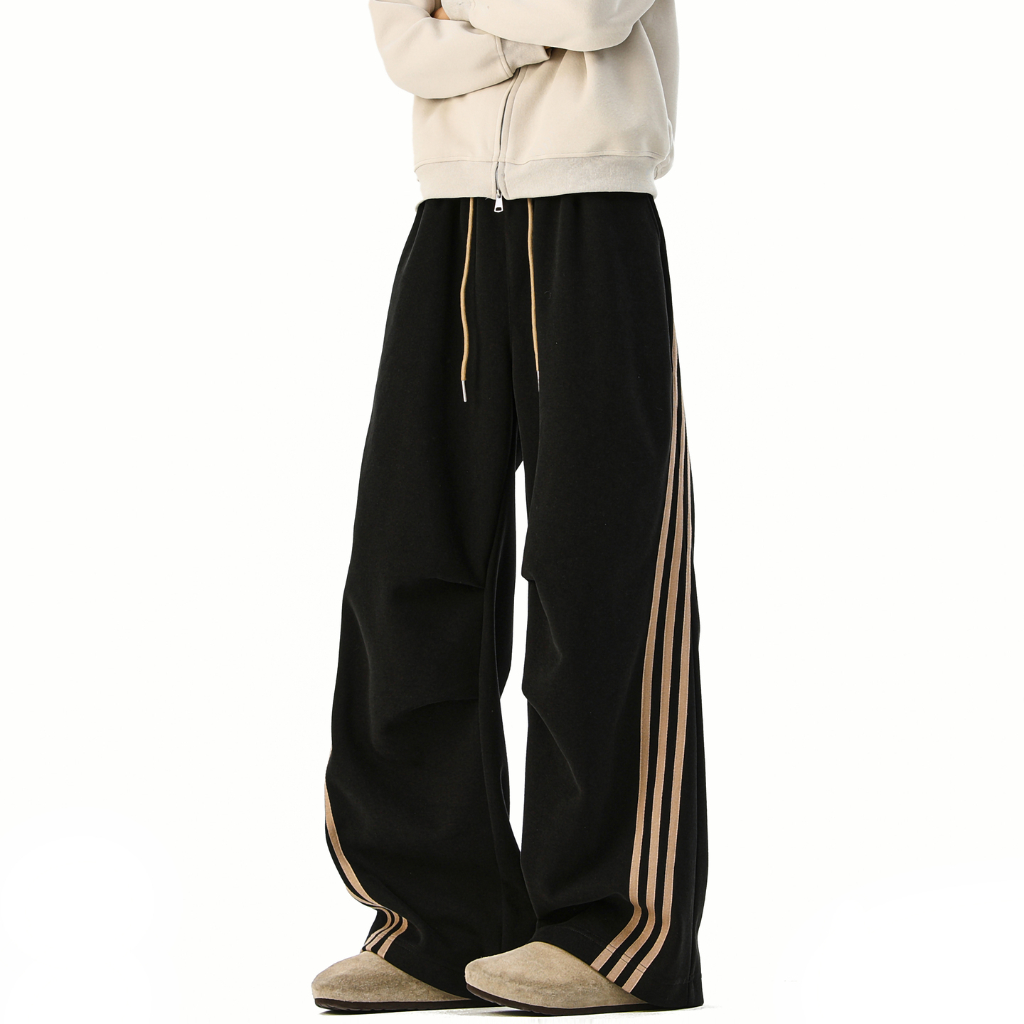 悟空有货复古潮牌条纹直筒垂感卫裤男女美式宽松百搭阔腿休闲长裤
