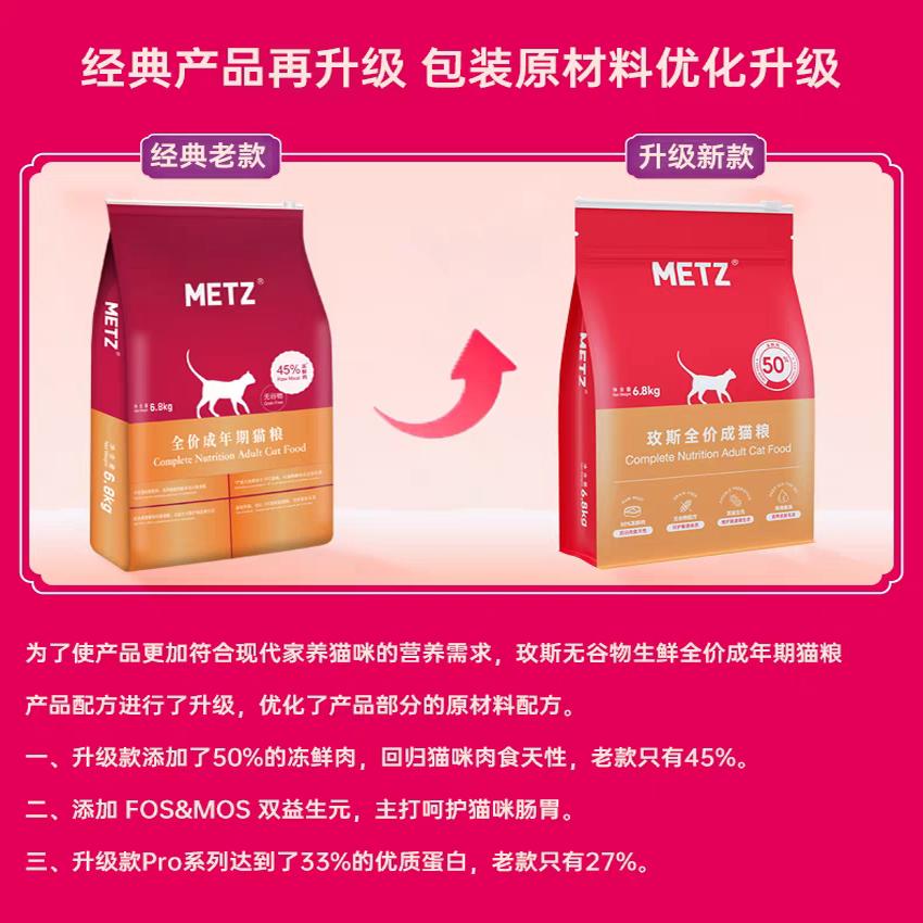 麦芽熊/METZ玫斯无谷物鲜肉猫粮6.8kg成猫粮猫主粮15磅包邮