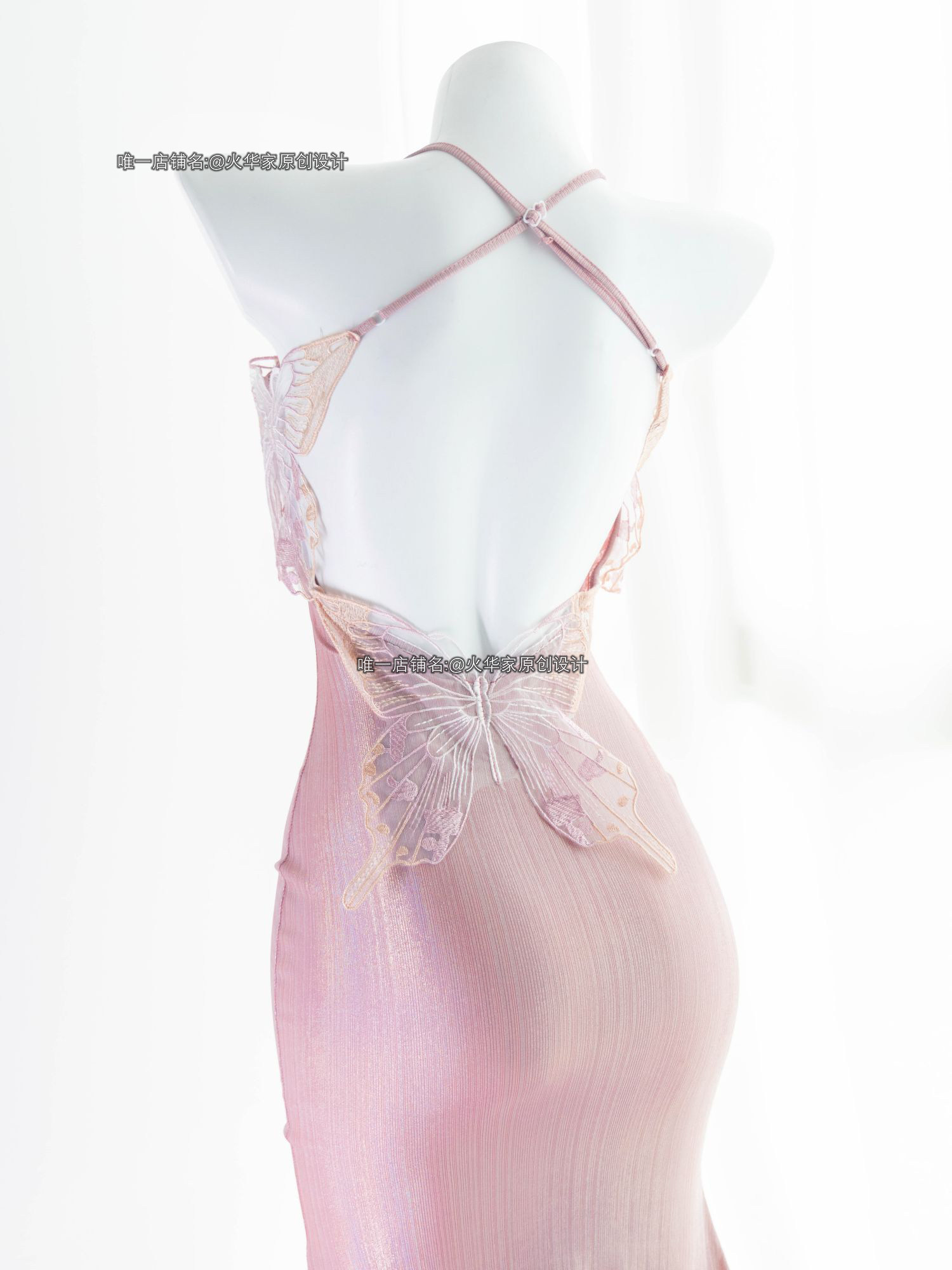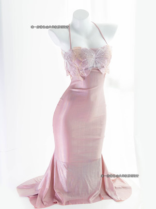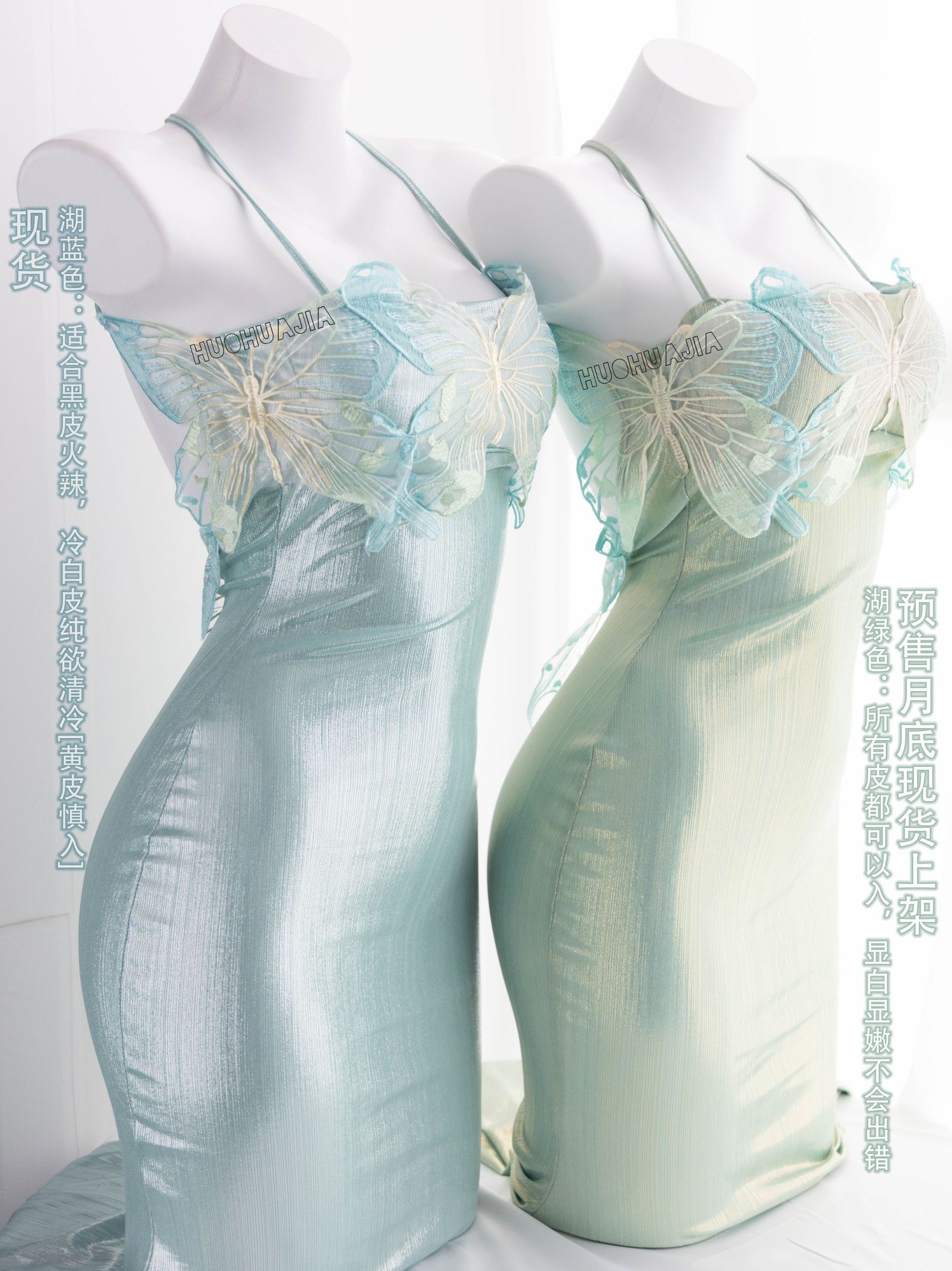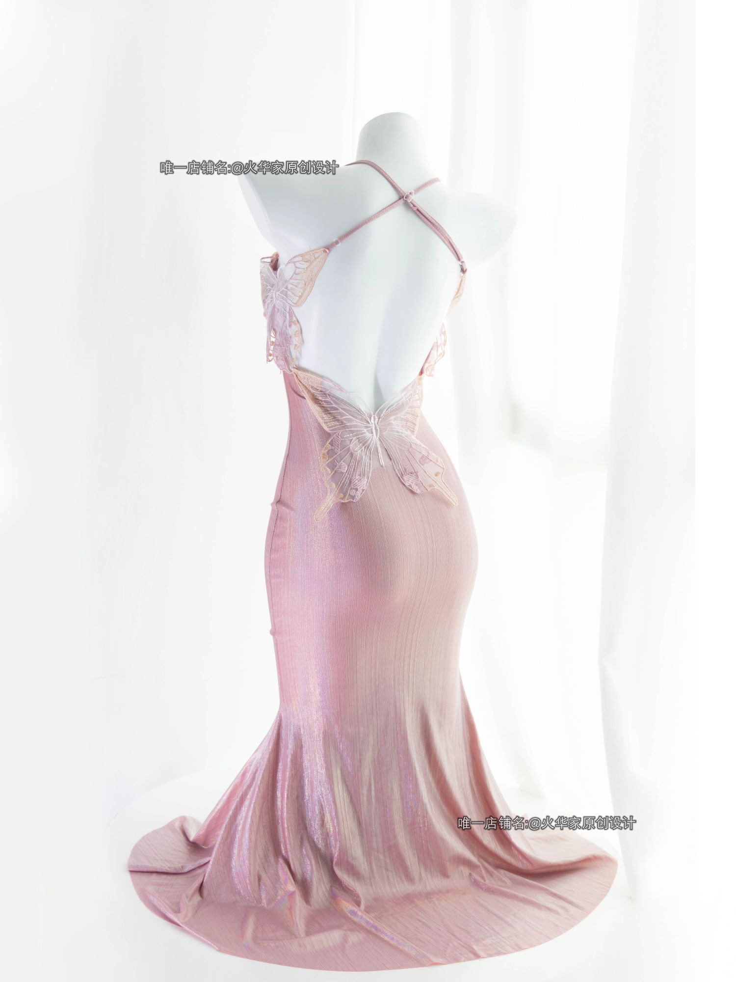 火华家原创设计 梦蝶 人鱼姬色鱼尾裙蝴蝶刺绣抹胸连衣裙 现货