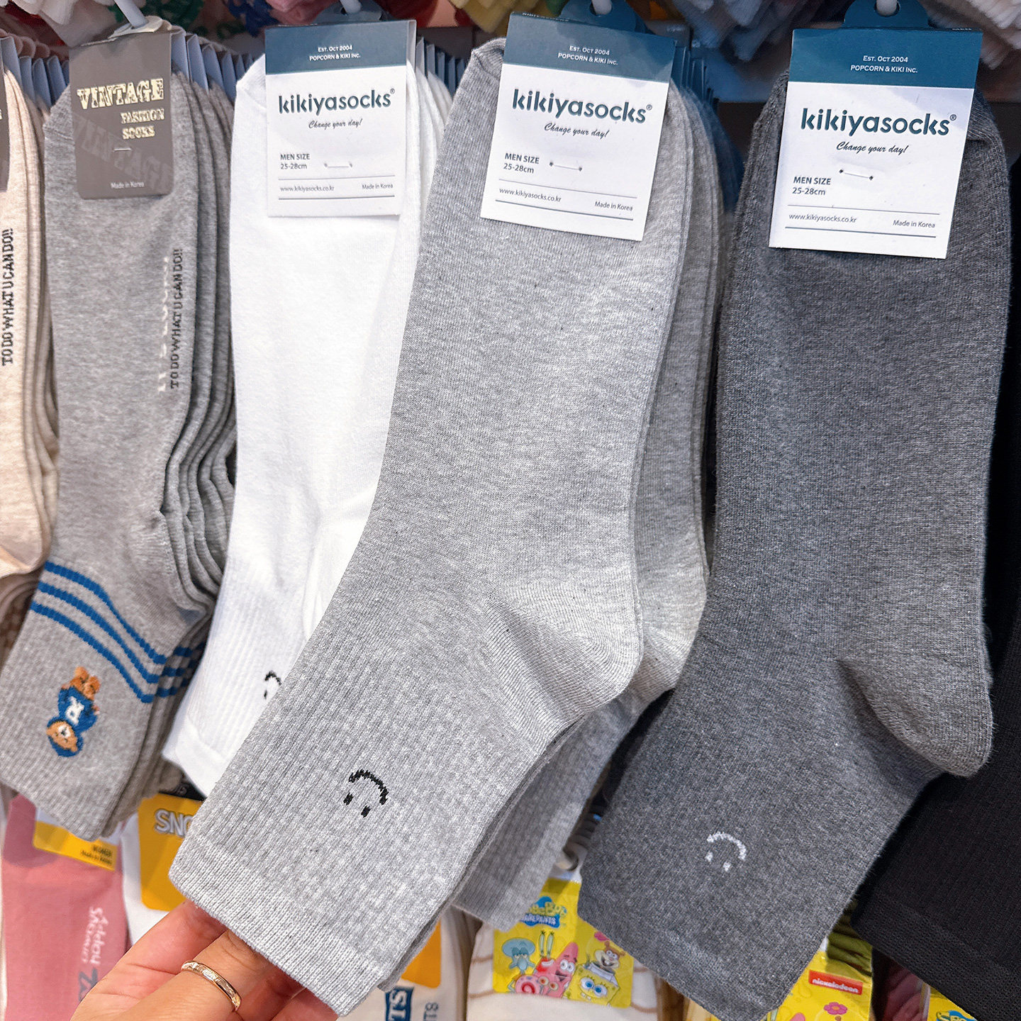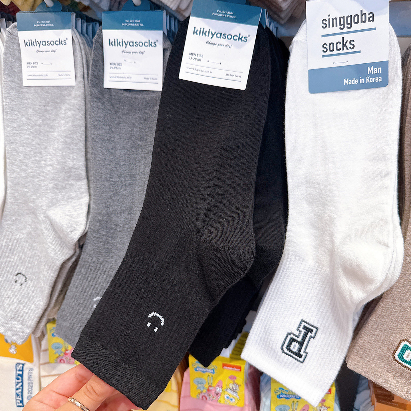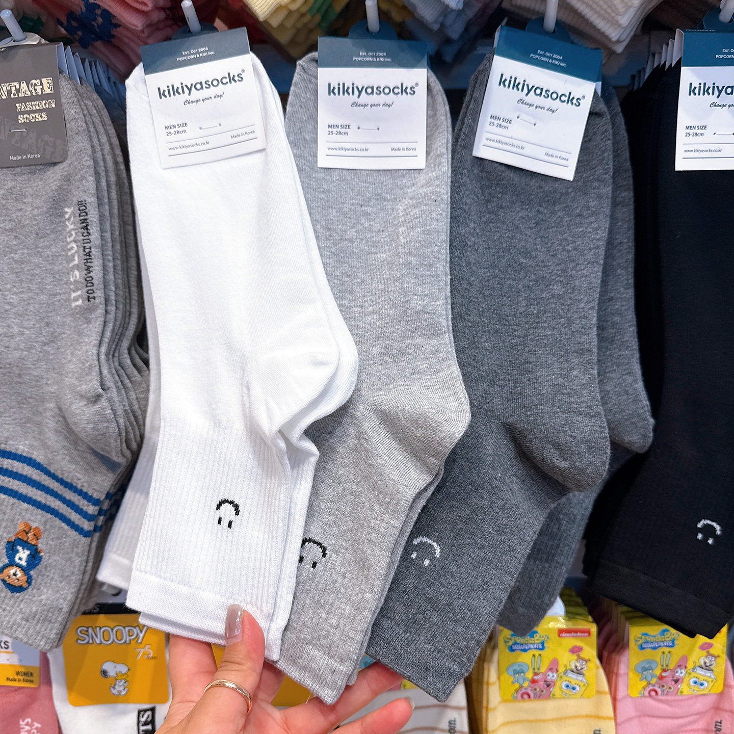 韩国东大门代购袜子男士笑脸吸汗棉袜kikiya秋冬季黑白色中筒男袜