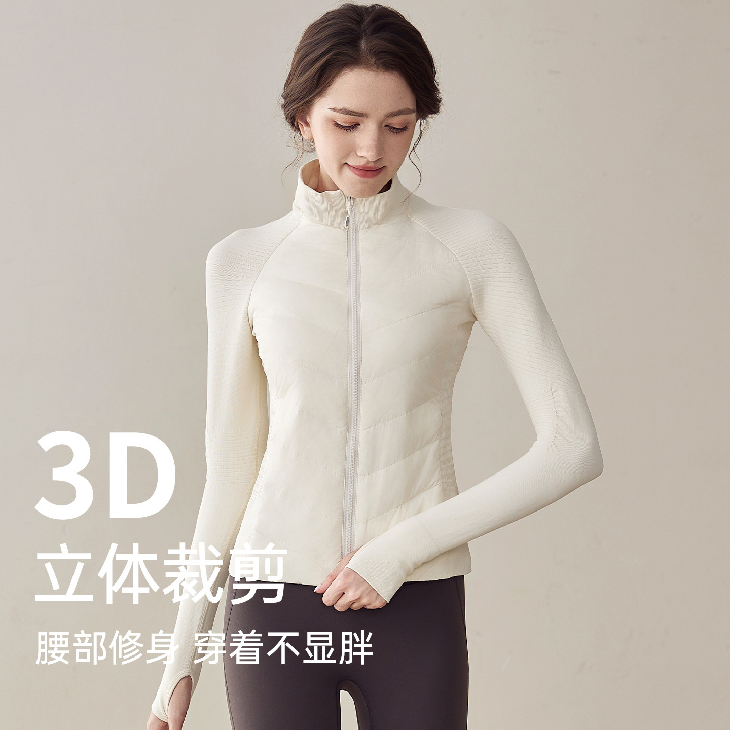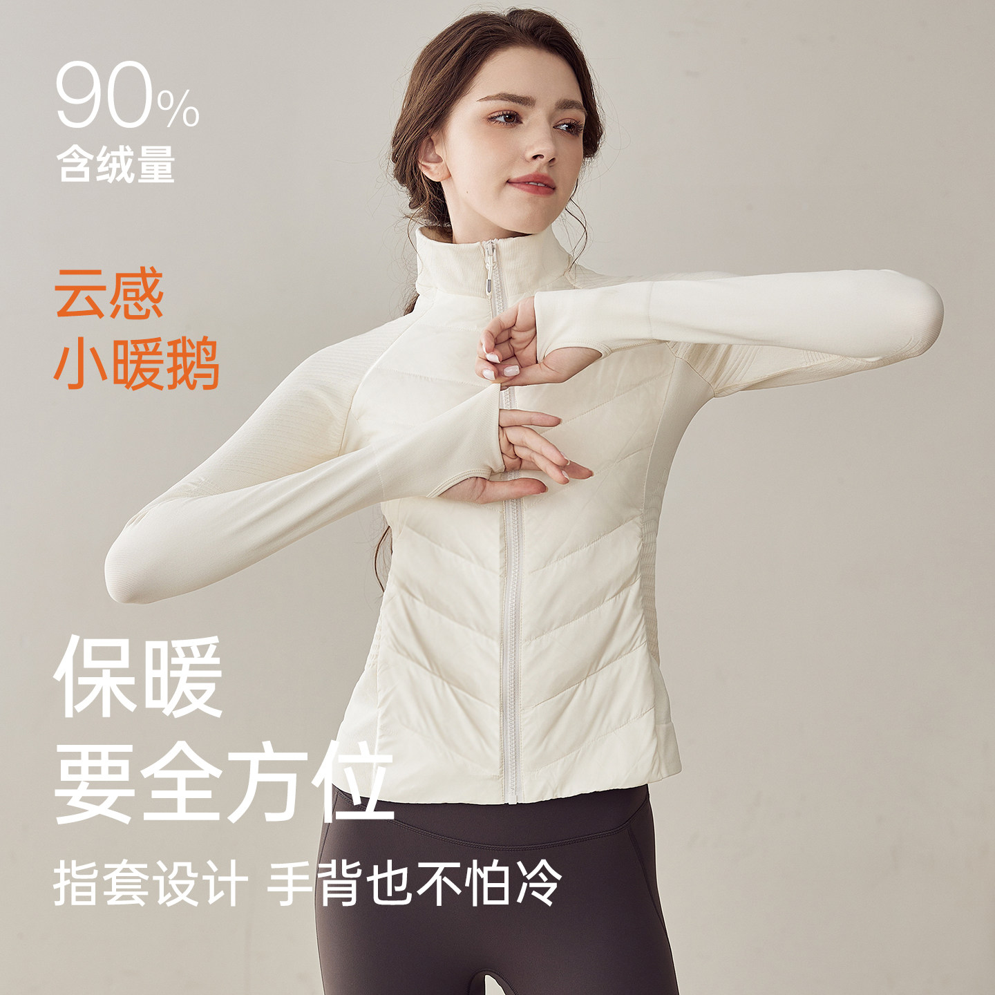 户外轻薄鹅绒羽绒服女秋冬新款短款修身保暖立领白色跑步运动外套