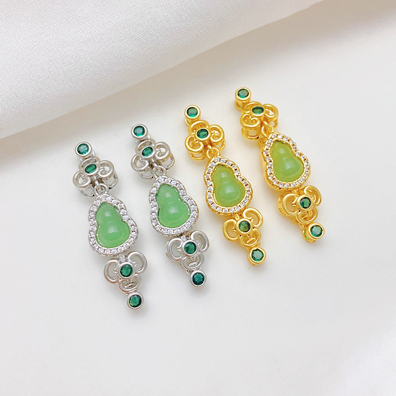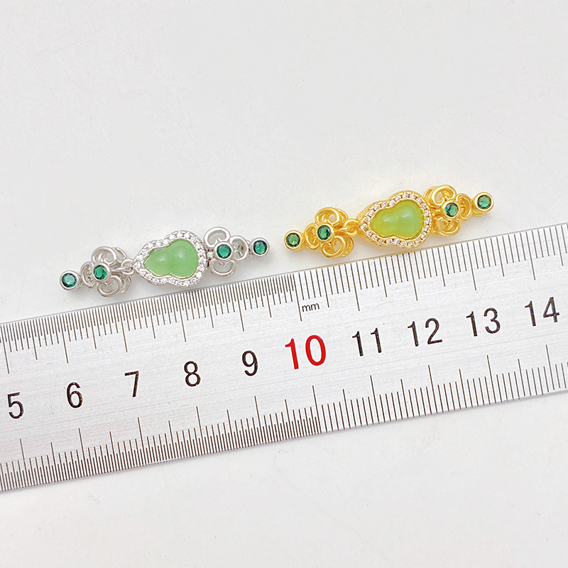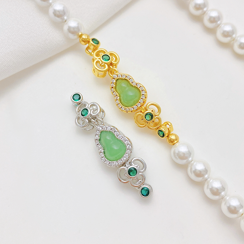 18K镀真金天然绿玉葫芦元宝扣手工diy串珠手链项链收尾连接扣配件