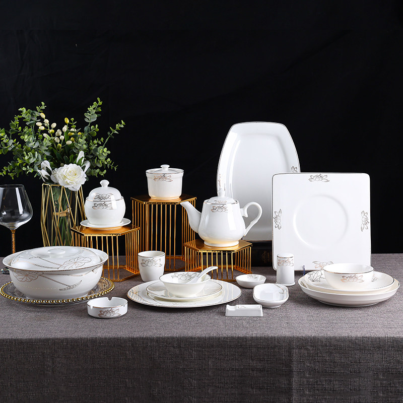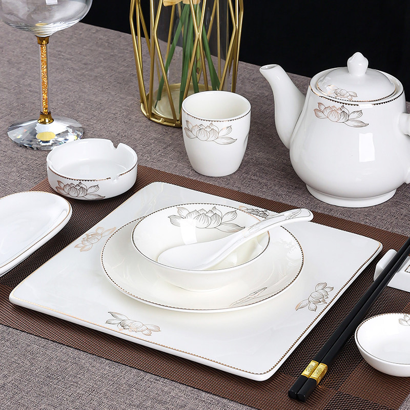 酒店用品餐具陶瓷摆台套装盘碗碟饭店摆台四件套骨碟翅碗汤勺茶杯