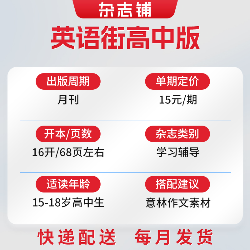 英语街高中版杂志 2026年1月起订 1年共12期 杂志铺 杂志订阅 中英双语英语学习辅导期刊杂志书籍 高中一二三年级高中生 全年订阅