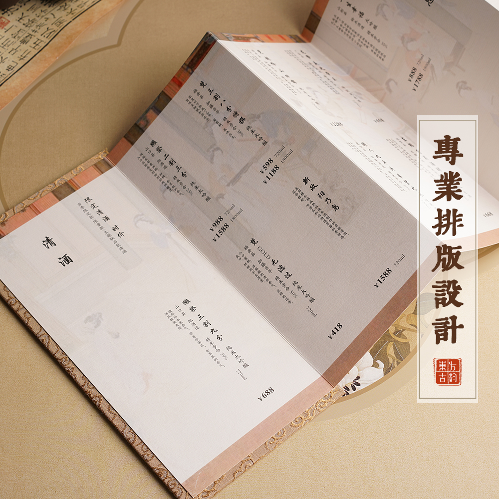 茶室茶楼古风菜单价目表设计茶馆茶水单布面中式餐厅折页菜谱制作