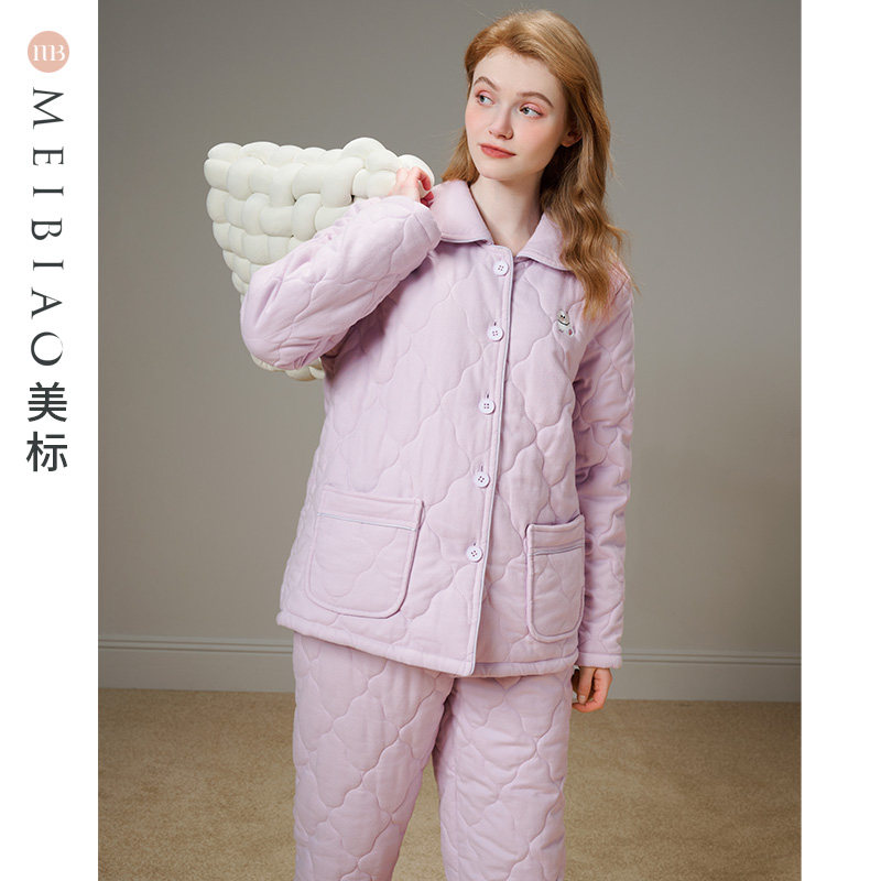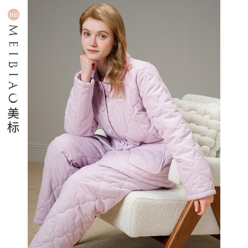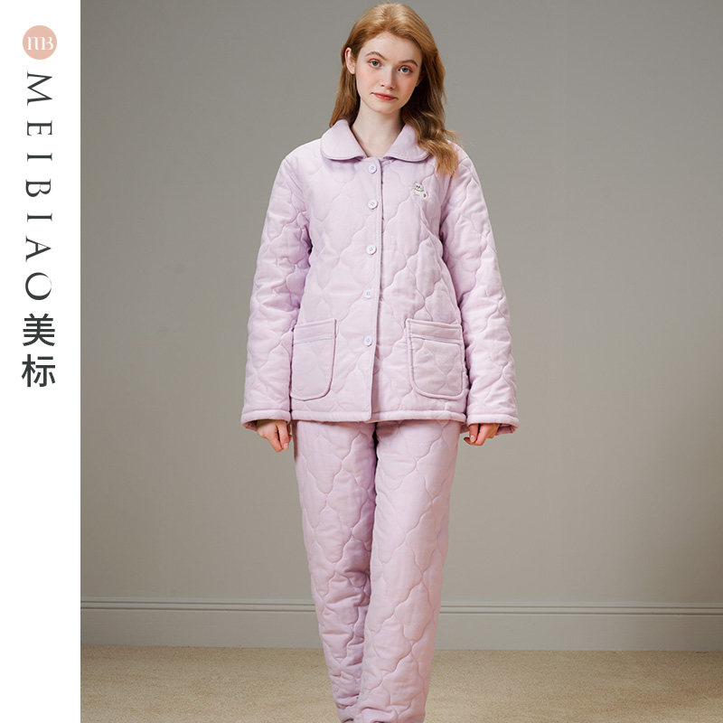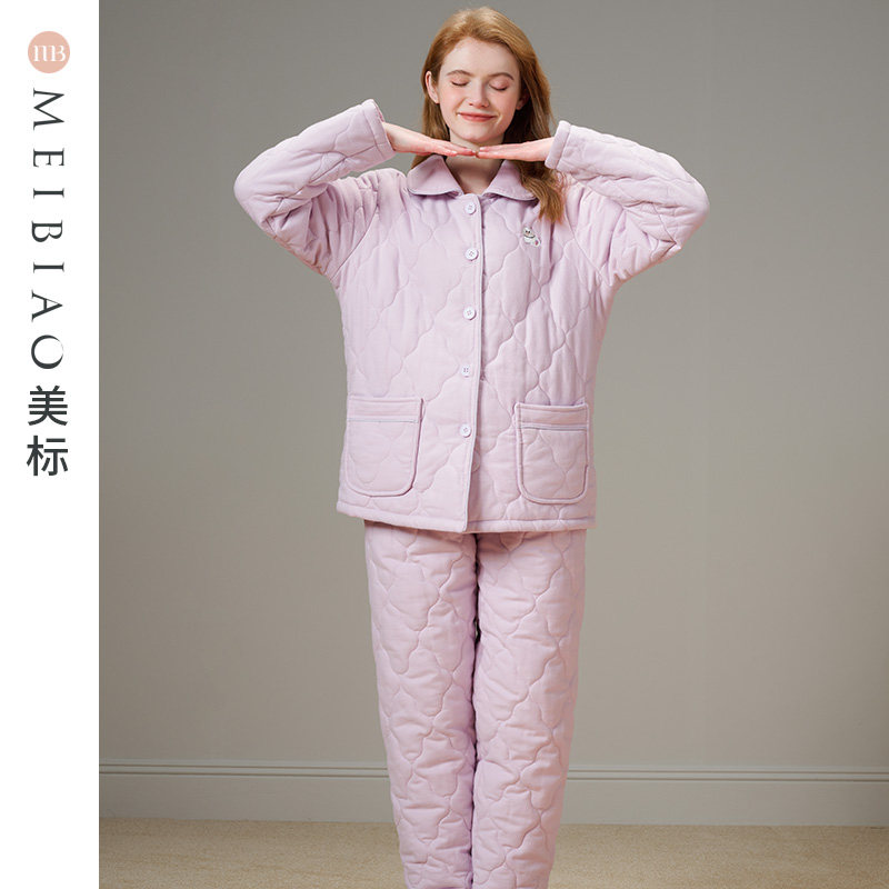 美标新款三层加厚保暖夹棉纯棉睡衣套装女秋冬全棉卡通休闲家居服
