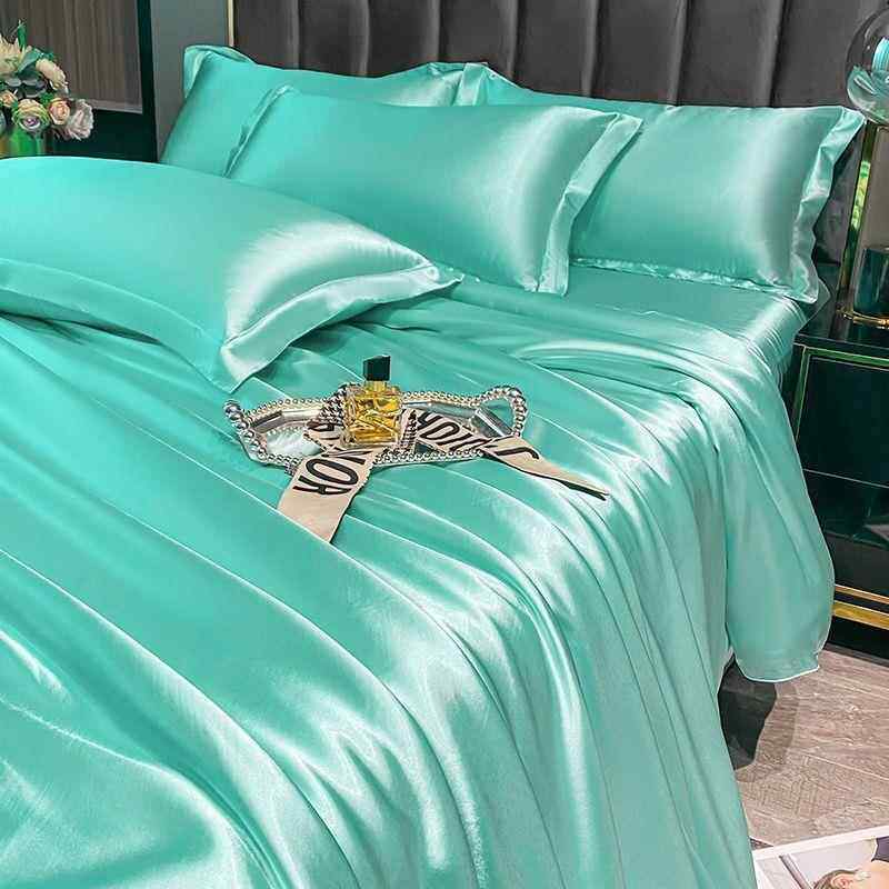 夏季纯色双面真丝四件套天丝床单被套天丝绸冰丝床笠罩床上用品