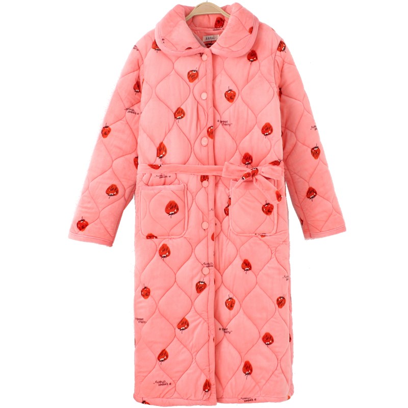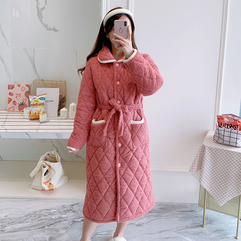 睡袍女秋冬款2023新款睡衣加绒加厚三层夹棉冬季可外穿中长款冬款
