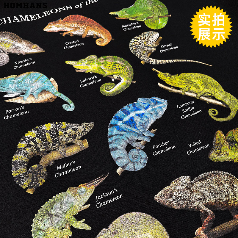 变色龙合集趣味动物解析图短袖棉