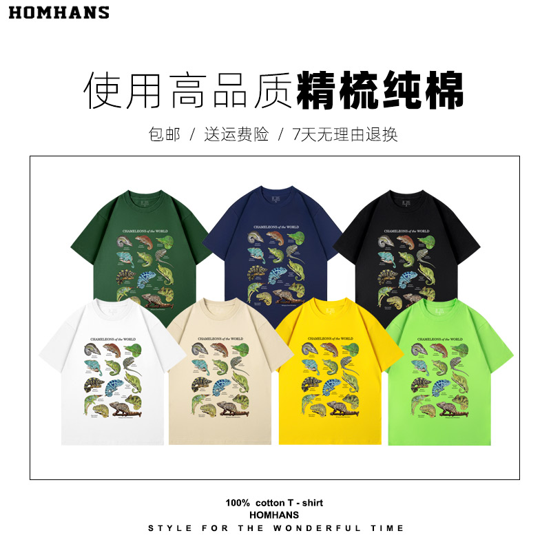 变色龙合集趣味动物解析图短袖T恤男女同款宽松休闲纯棉新款亲子