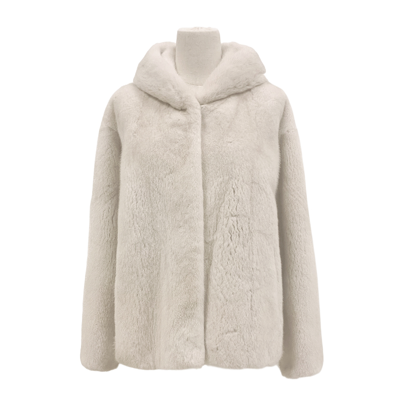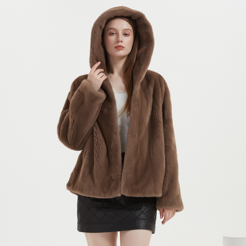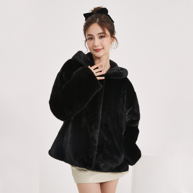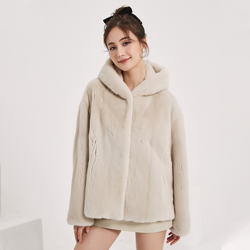茉萱皮草进口紫标天鹅绒整貂连帽貂皮大衣女短款珍珠本色水貂外套
