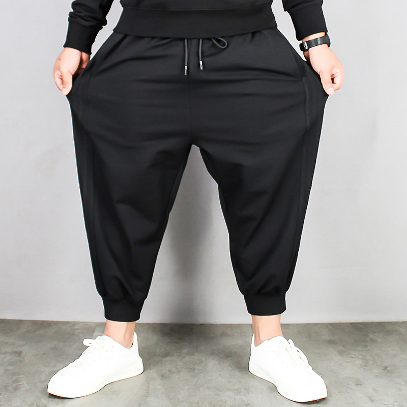 九分裤男胖子 潮大码9分胖男休闲裤宽松加大加肥男裤弹力运动哈伦
