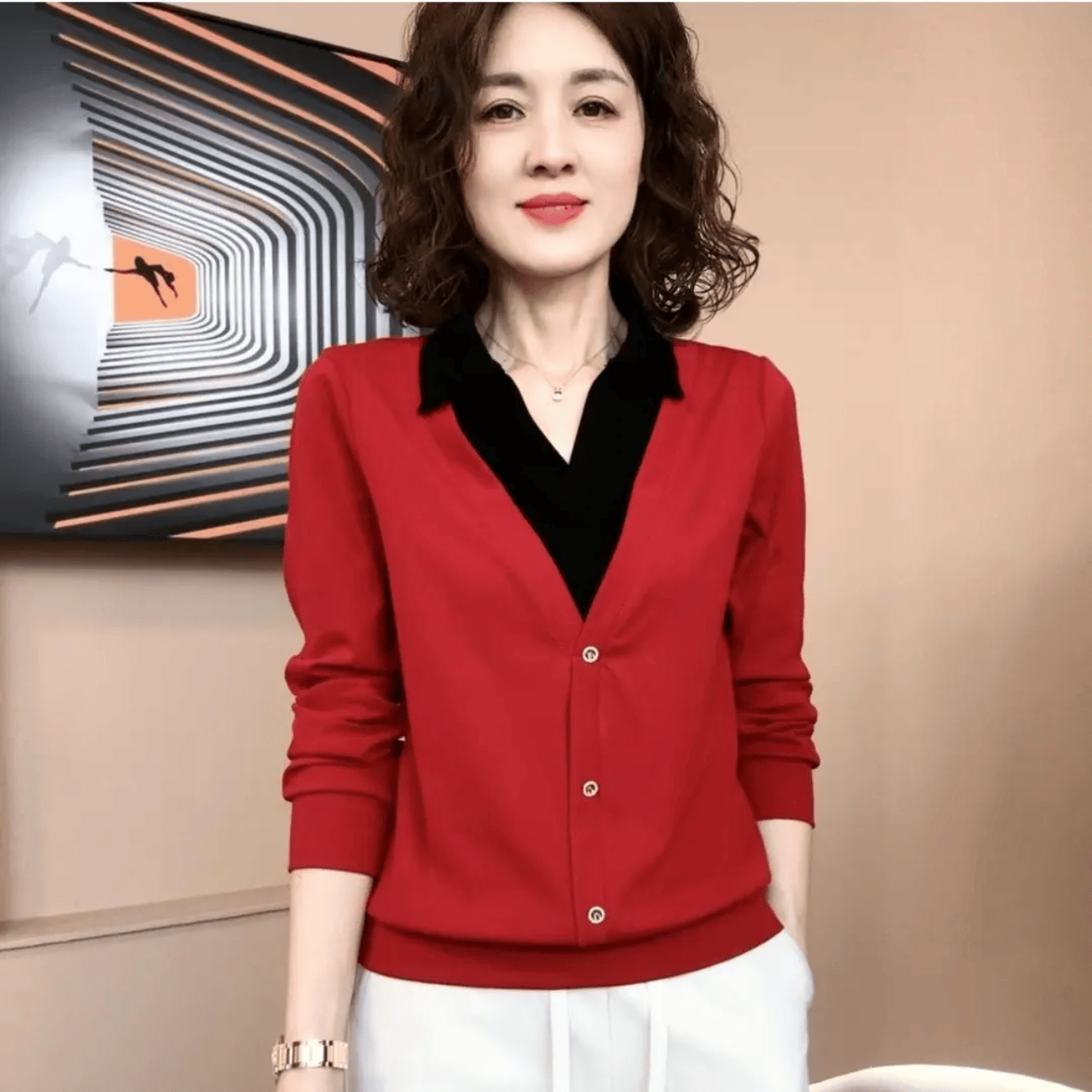秋季新款衬衫领假两件妈妈装时尚百搭T恤打底衫减龄撞色减龄上衣